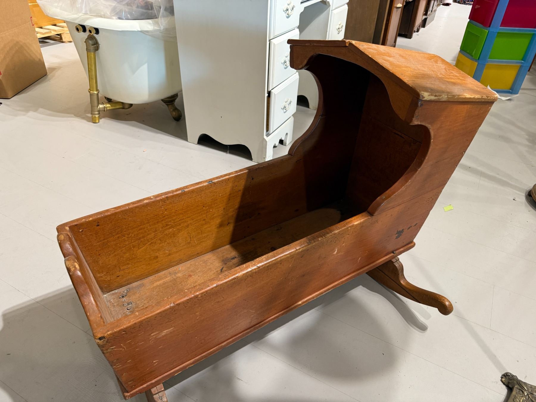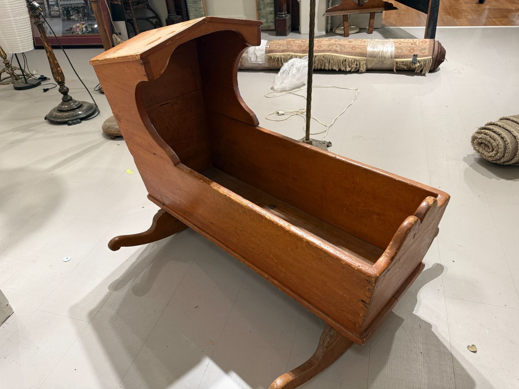 19th Century Pine Bonnet Top Rocking Baby Cradle (34" long x 27" tall * rockers are 28" wide)