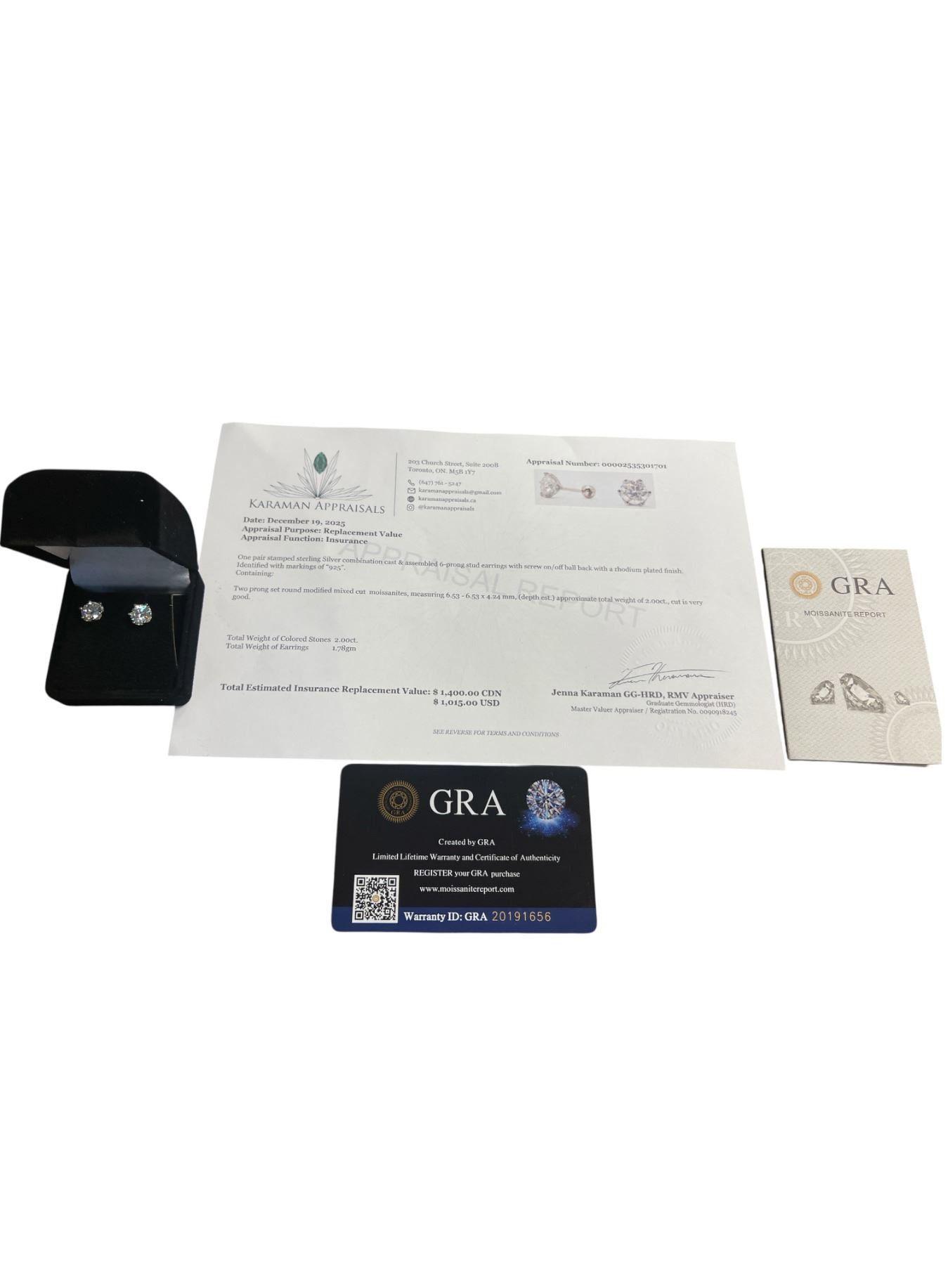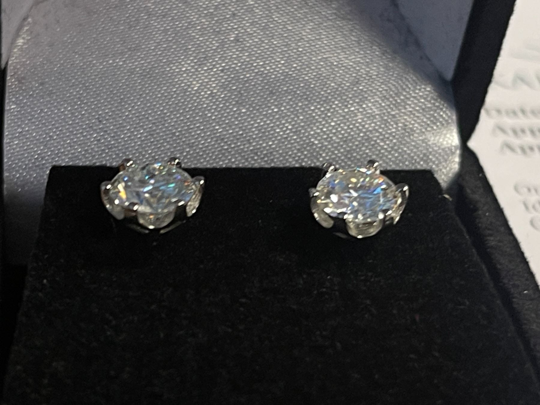 2.00 CT TW GRA CERTIFIED ROUND BRILLIANT CUT MOISSANITE STONES VVS D COLOR SET IN 6 CLAW FILAGREE HEAD SET IN 925 SILVER EARRINGS WITH SCREW BACKS RETAIL VALUE $1,400.00