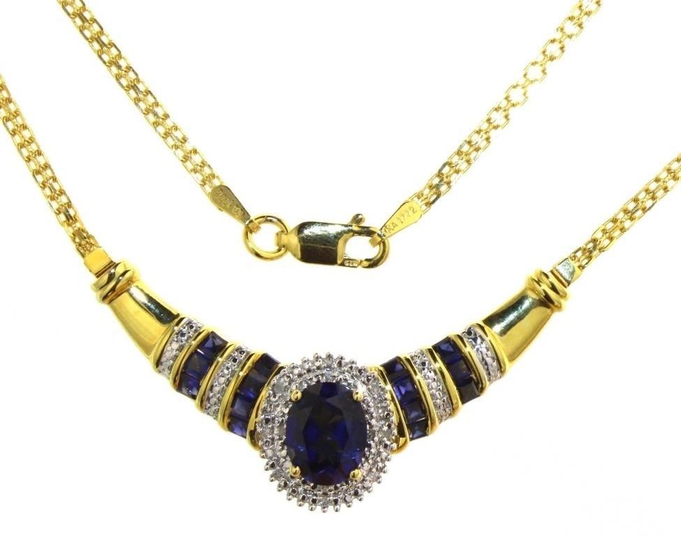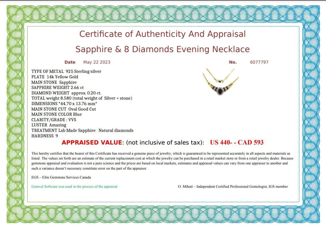 2.66ct Sapphire & Natural Diamond Evening Necklace - retail appraisal value $440 USD (w/ Certificate Of Authenticity Appraisal)