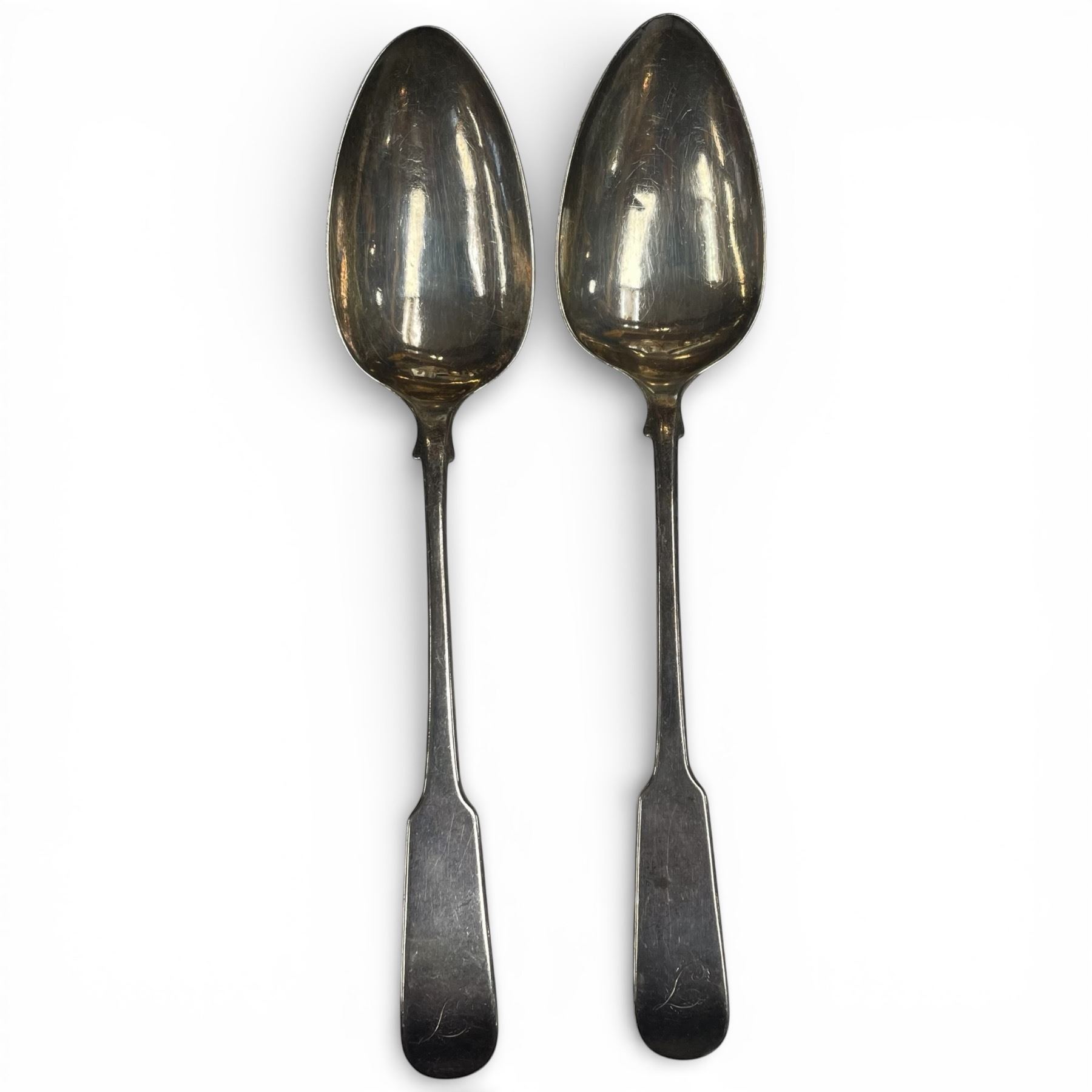 2 Antique Sterling Silver 9" Serving Spoons (Edinburgh Hallmarks * John Zeigler 1795-1835) * Engraved with initial. Total weight: 119.5 grams