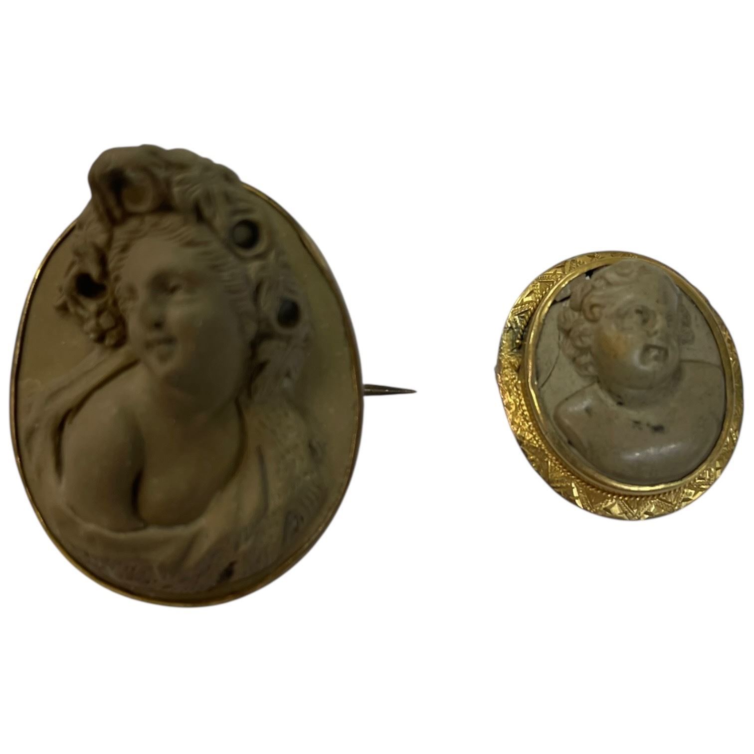 2 Antique Victorian Lava Cameo Brooches * The larger brooch is 15 x 27 x 32 mm