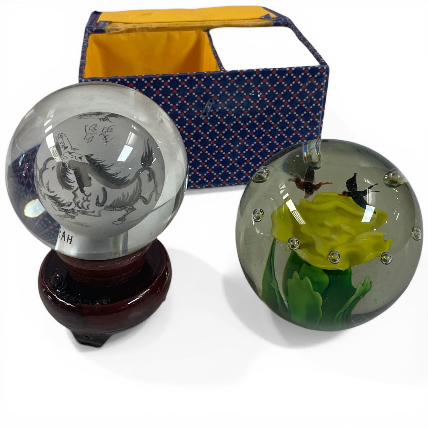 2 Art Glass Paperweights Largest is 3.5" Diameter