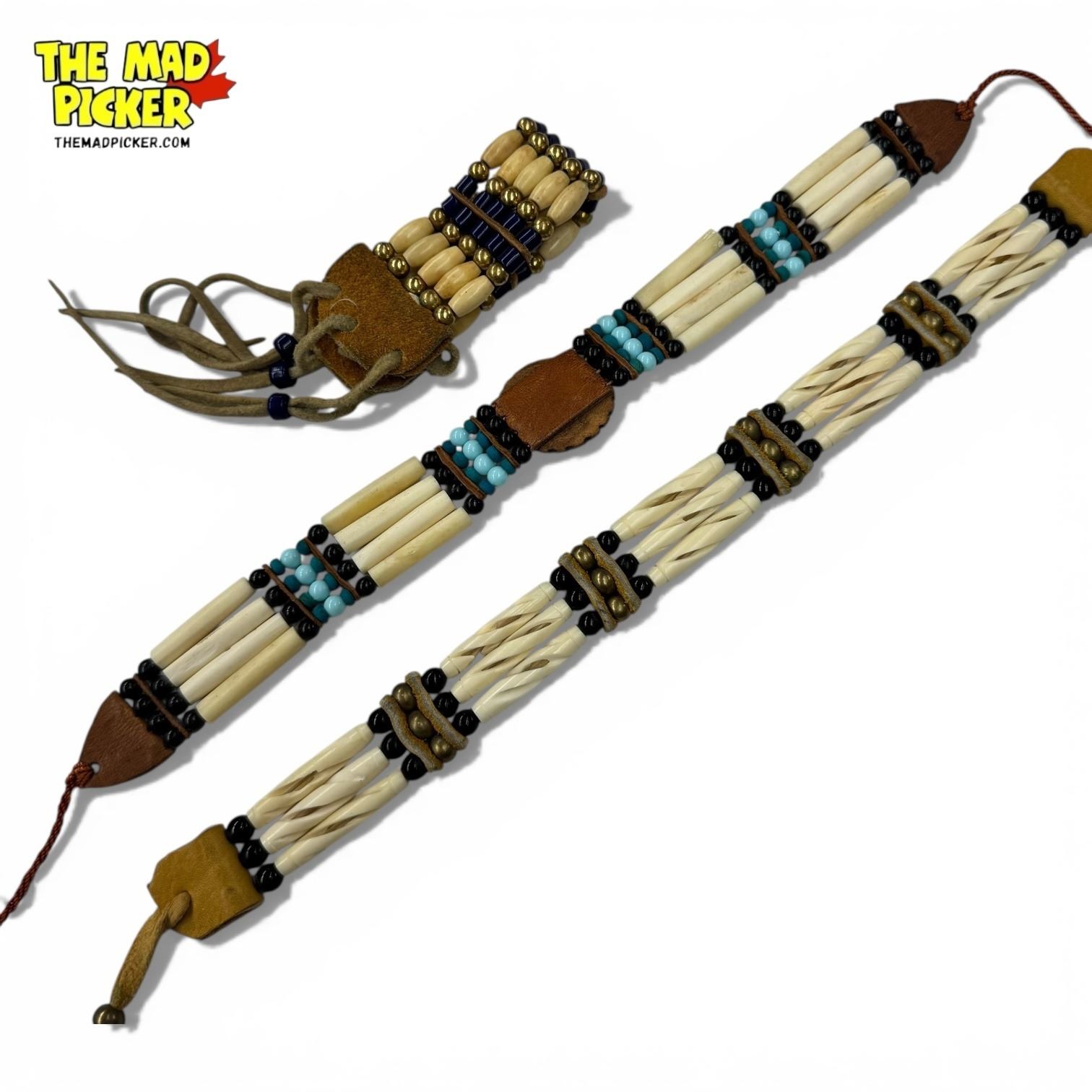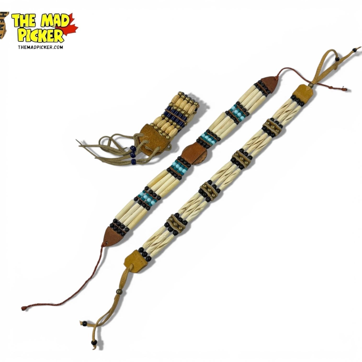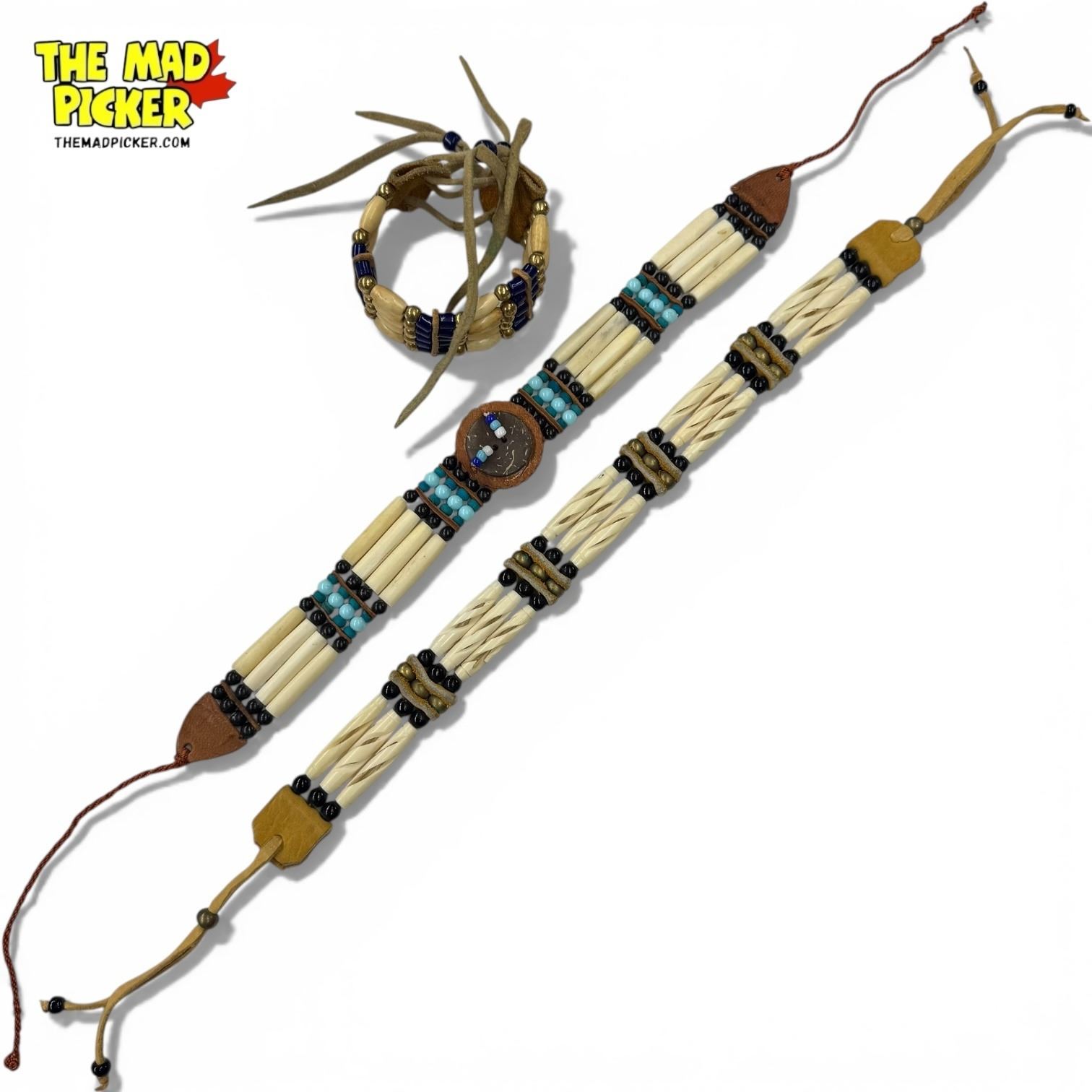 2 Beaded Leather Choker Necklaces and 1 Bracelet