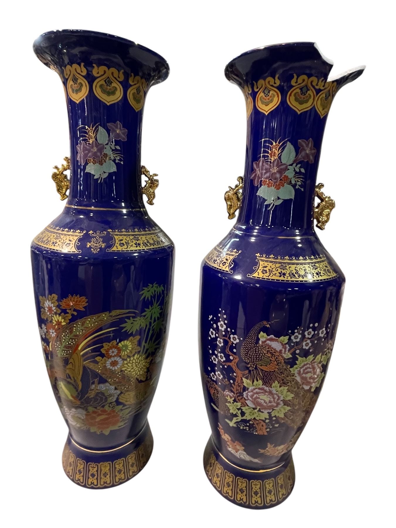 2 Blue Peacock Porcelain Theme Vases (1 Chipped 24x8)