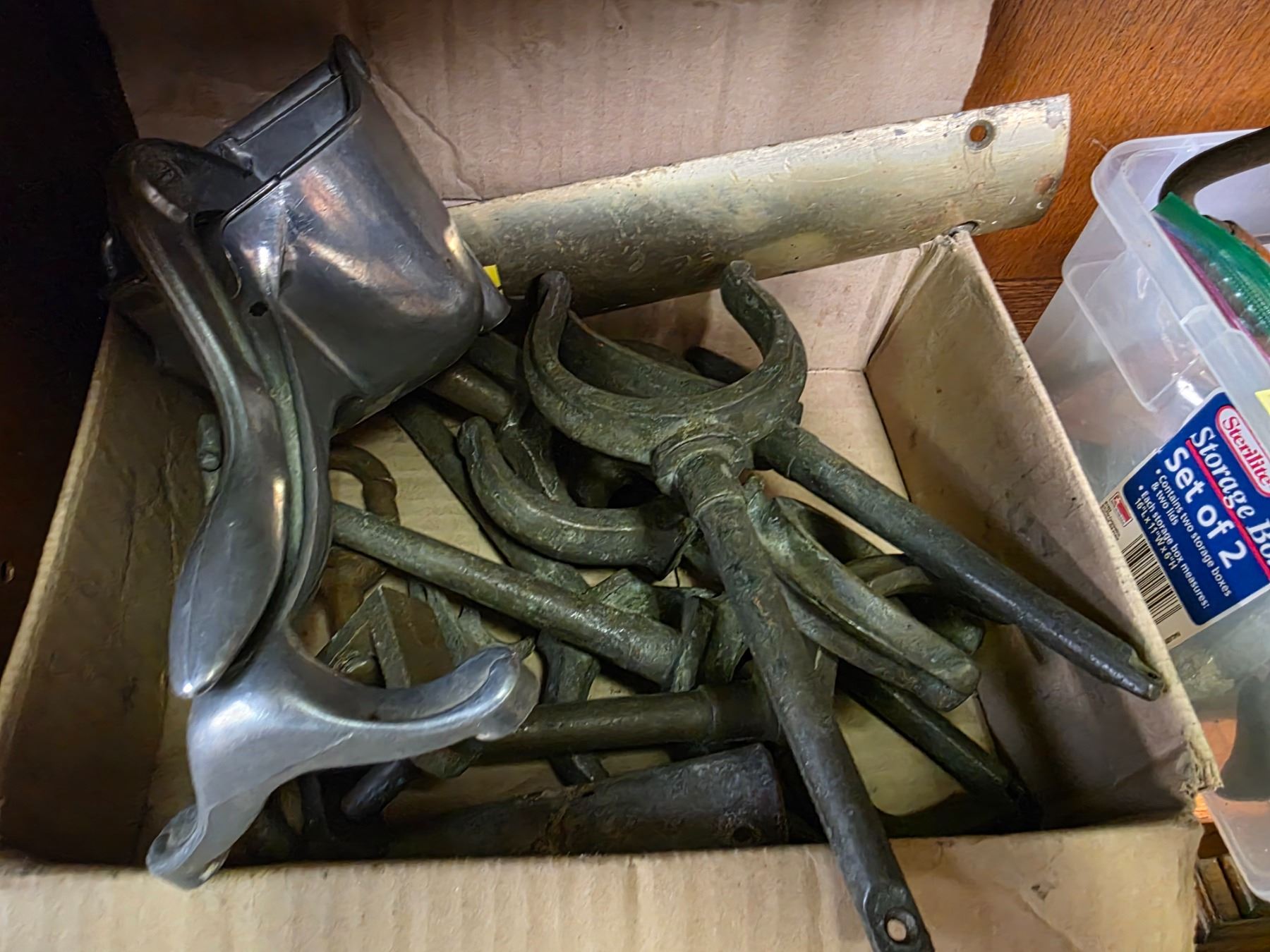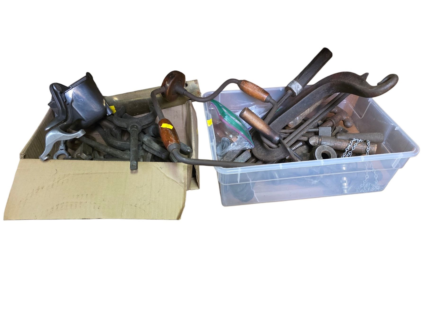 2 Boxes of Vintage & Marine Tools (Boat Oar Locks, Armpit Drill, Clamps and more)