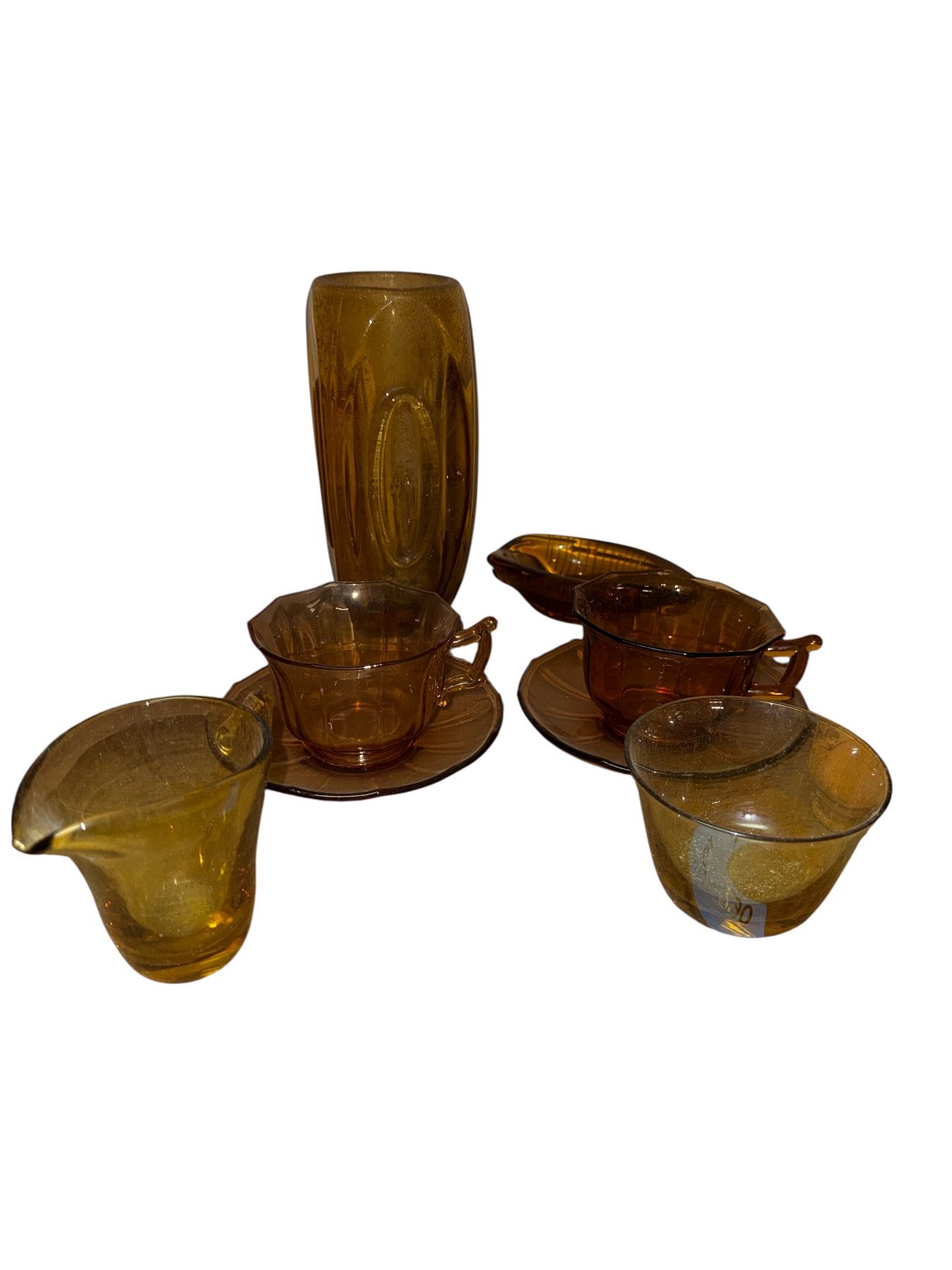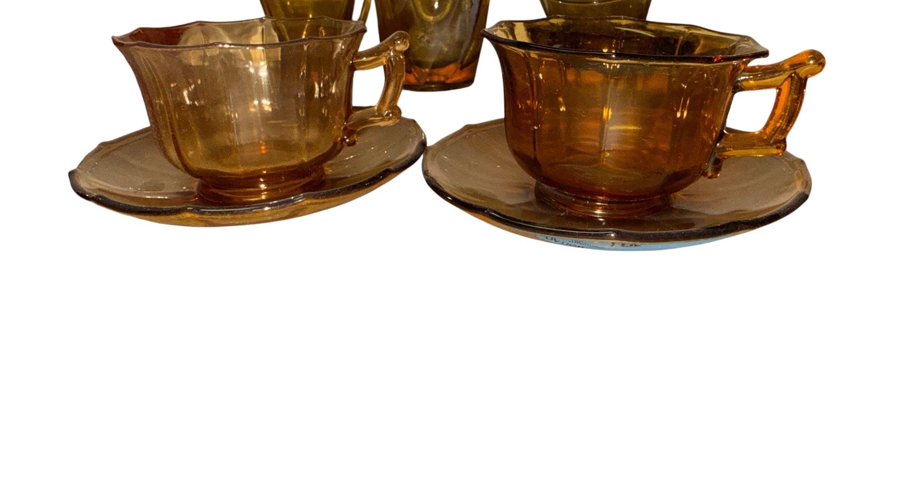 2 Cambridge Decagon Amber Sets and 4 Matching Coloured Glass Pieces