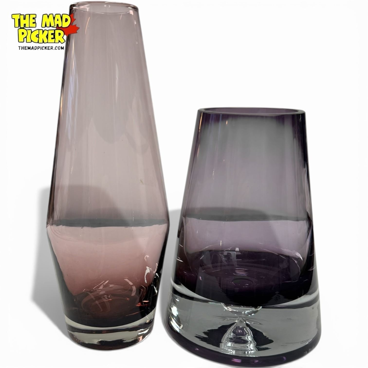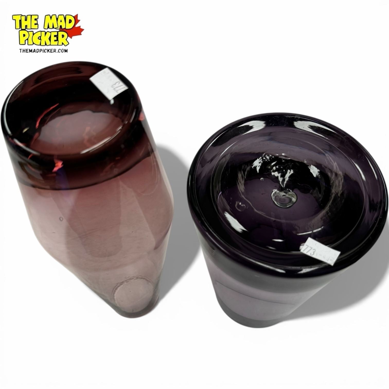 2 Danish Style Purple Glass Vases - Tallest is 10"