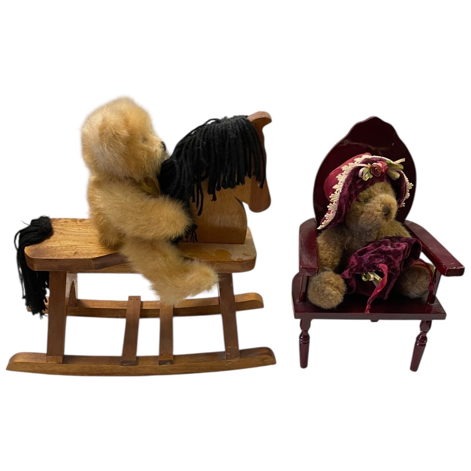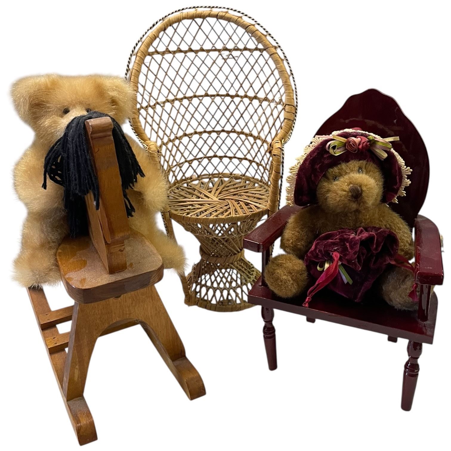 2 Doll Chairs & Doll Rocking Horse with Bears