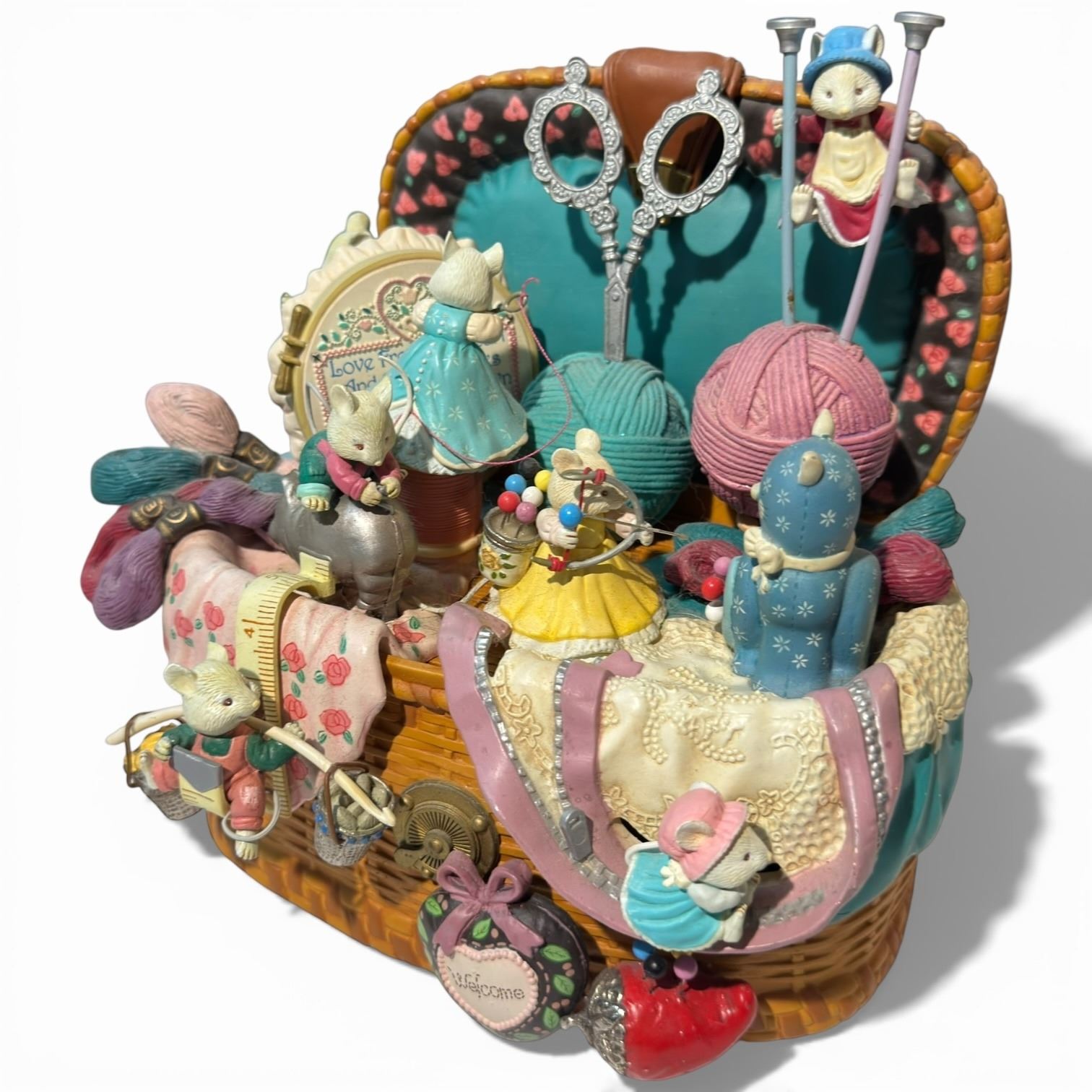2 Enesco Animated Musical Collectibles with the Whiskerflick Mouse Family (Teapot Bungalow and Sew Pretty) * One Charger