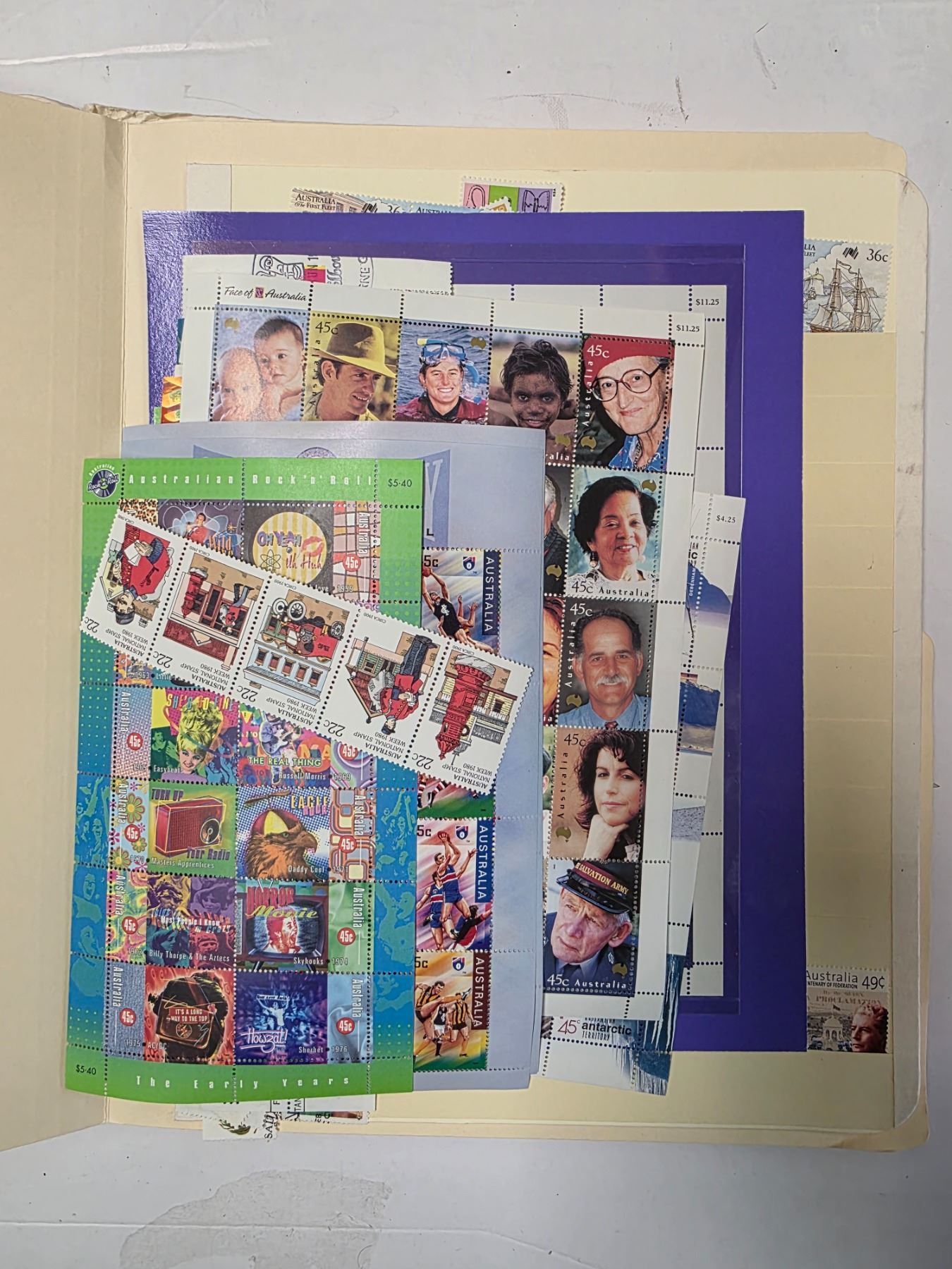 2 Folders of Australian Mint Strips Sheetlets & Blocks Plus Used Single Stamps