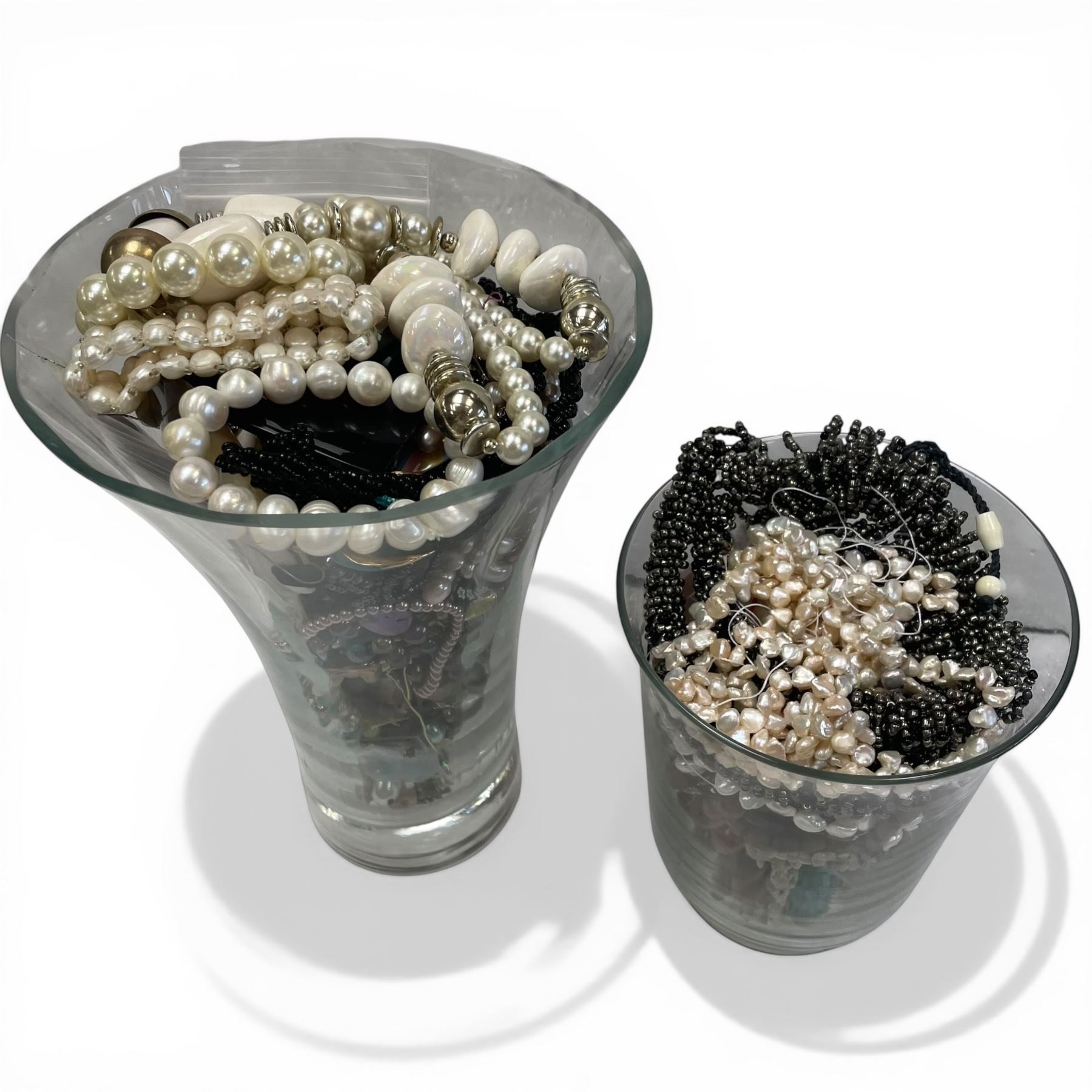 2 Glass Vases Full of Costume & Fashion Jewelry