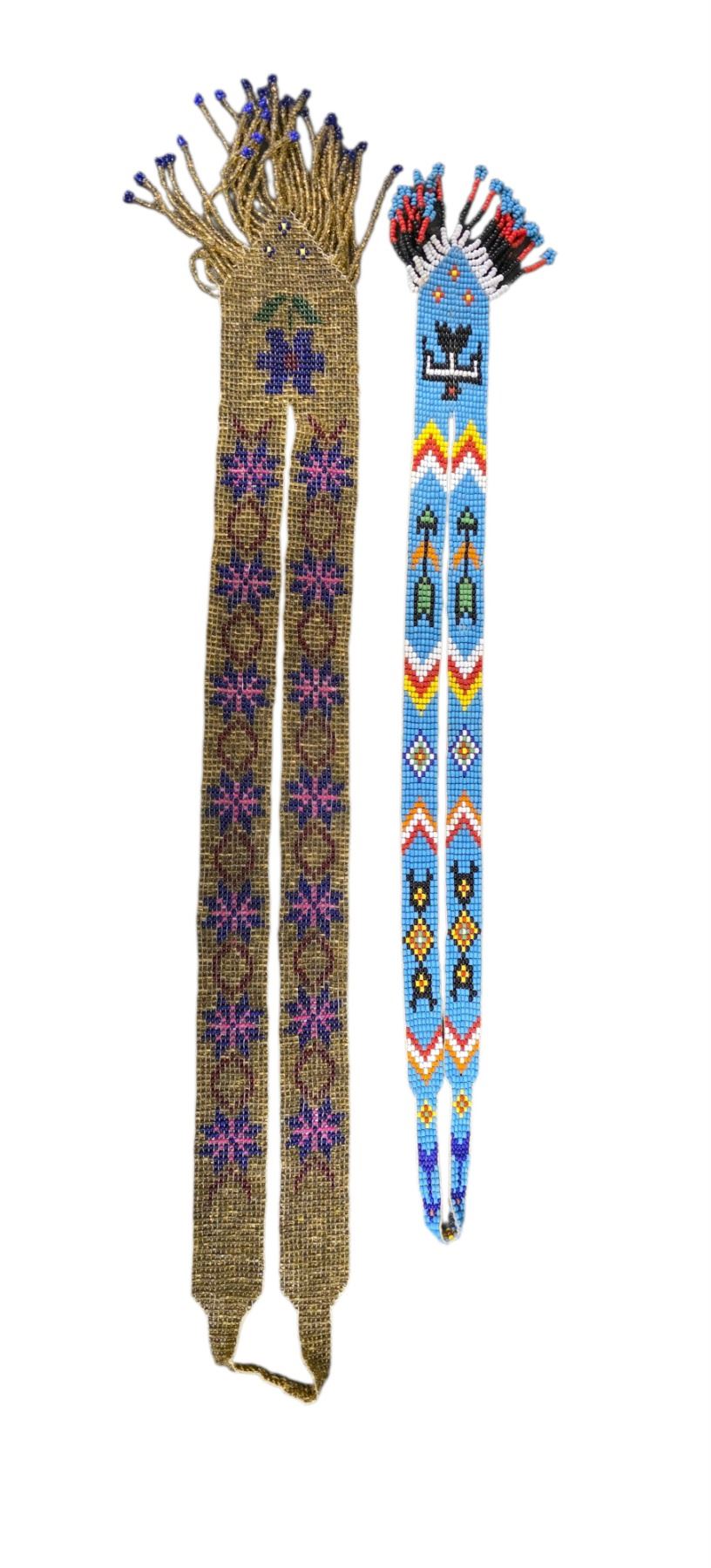 2 Handmade Beaded Sashes/Belts - Native-Style Geometric & Floral Patterns