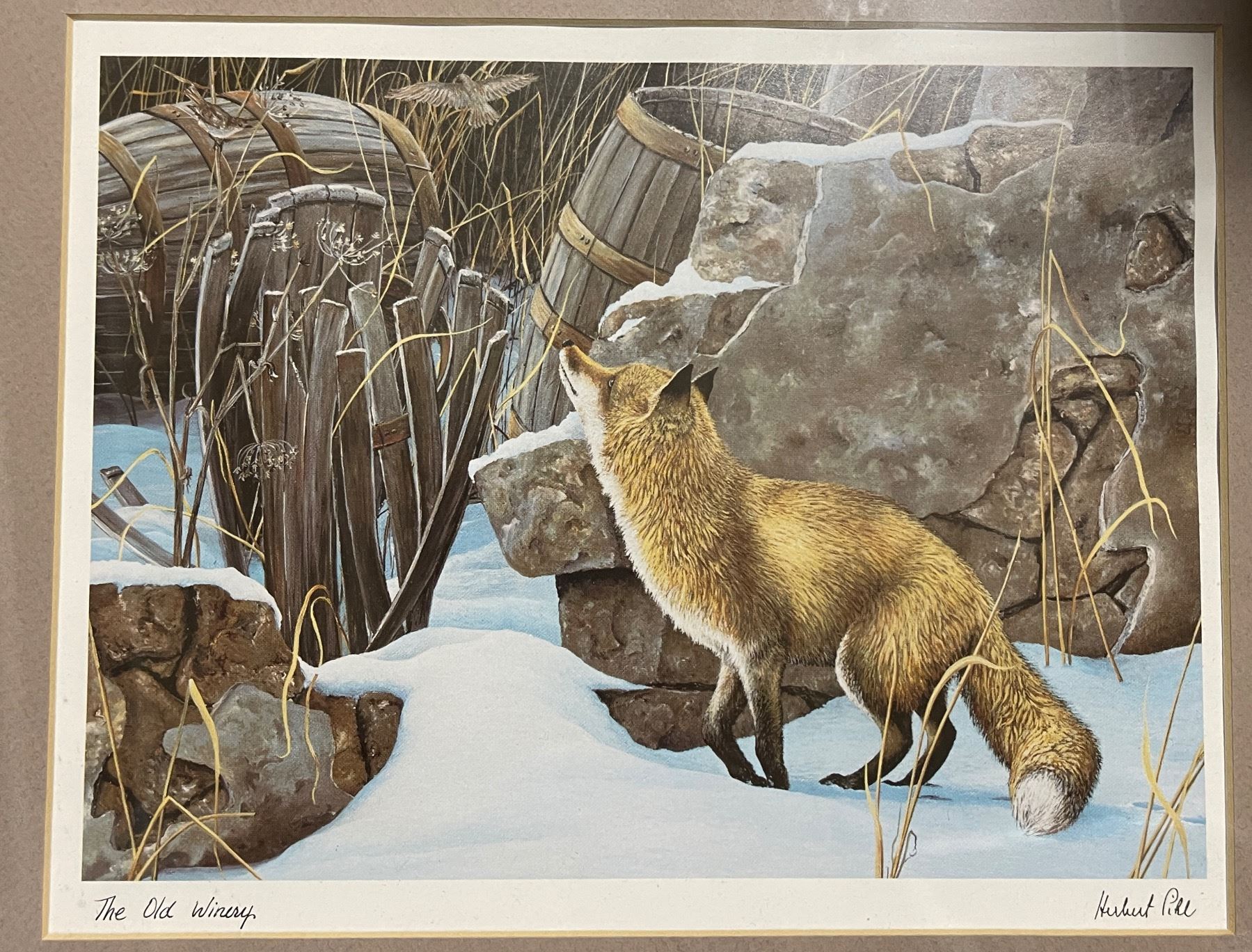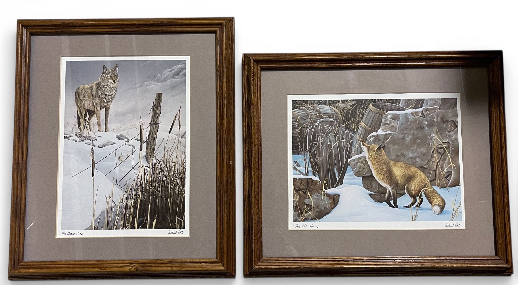 2 Herbert Pikl Framed Wildlife Prints - "The Fence Line" and "The Old Winery" (Both are double matted and 12" x 14" exterior frame dimensions)