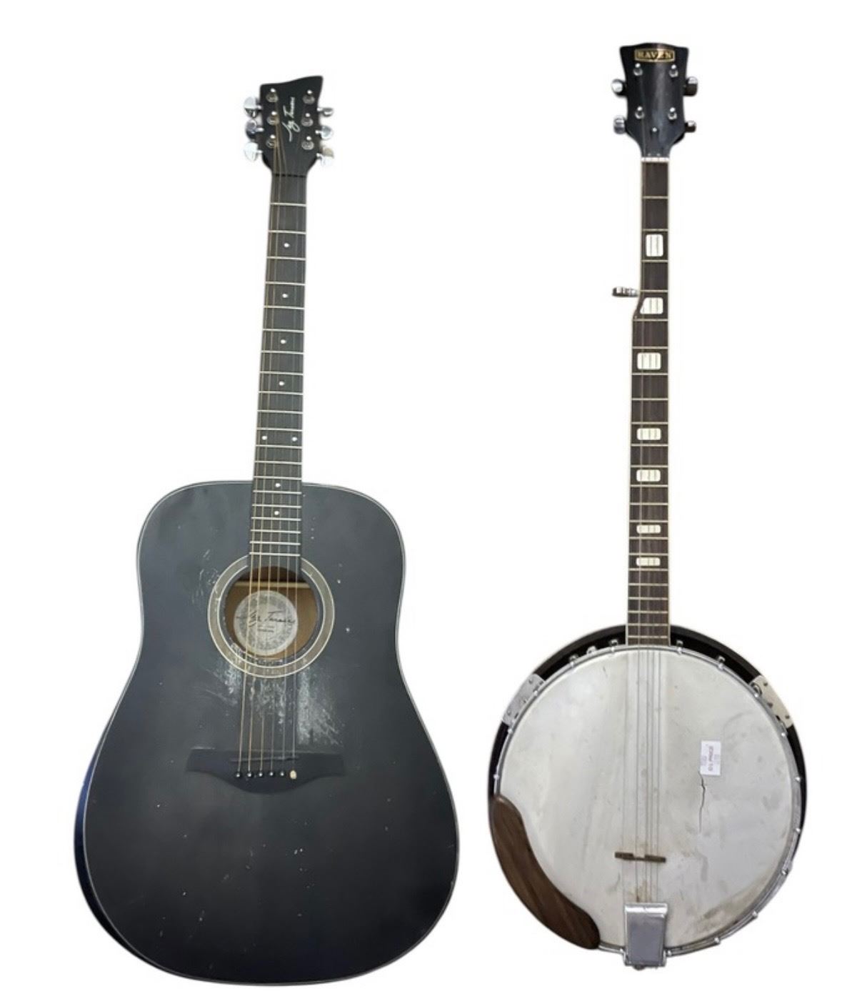 2 Instruments: Jay Turser Black Acoustic Guitar and 5-String Banjo