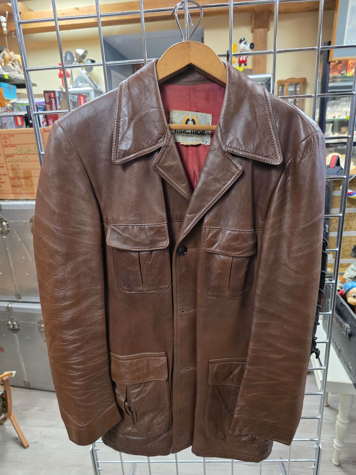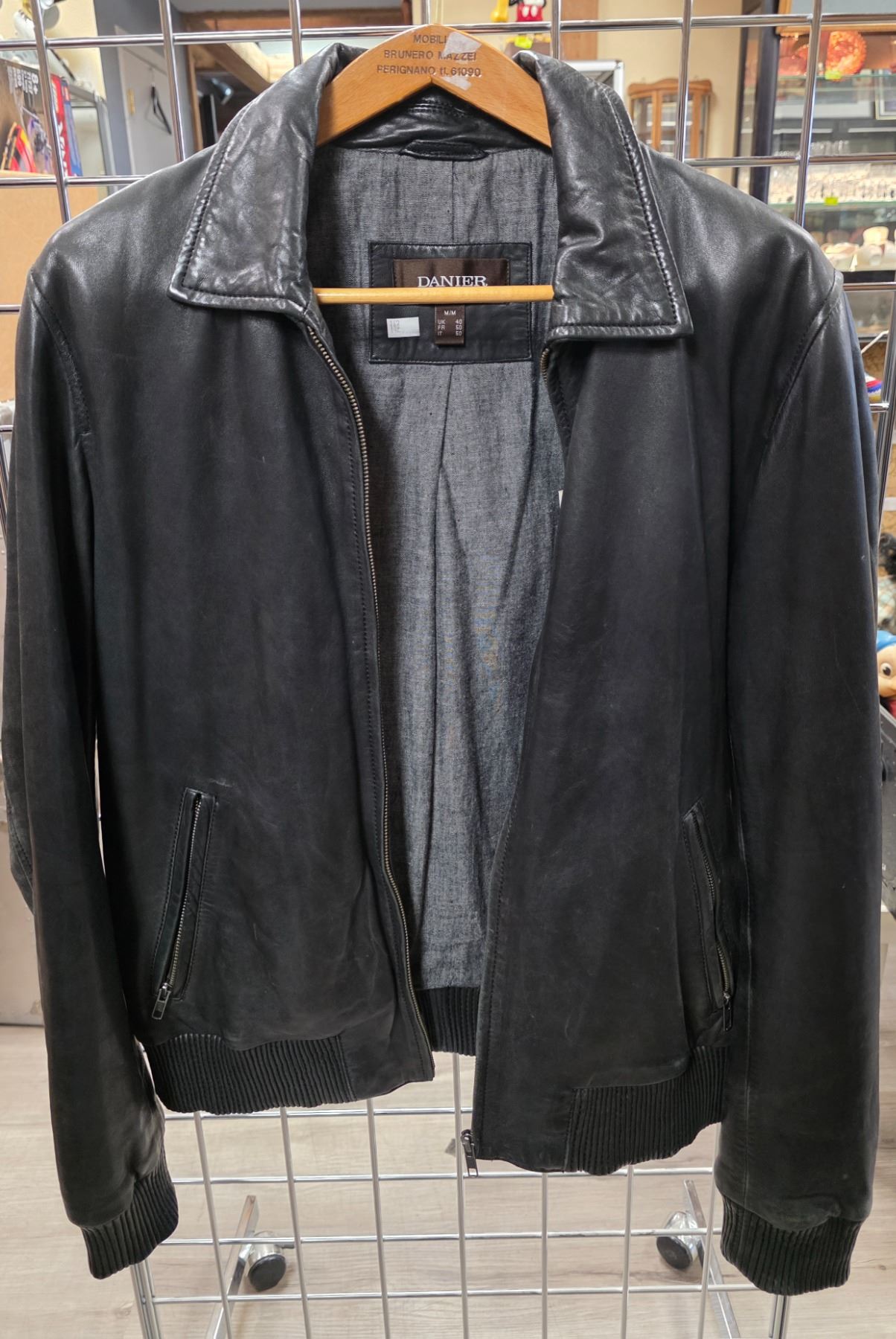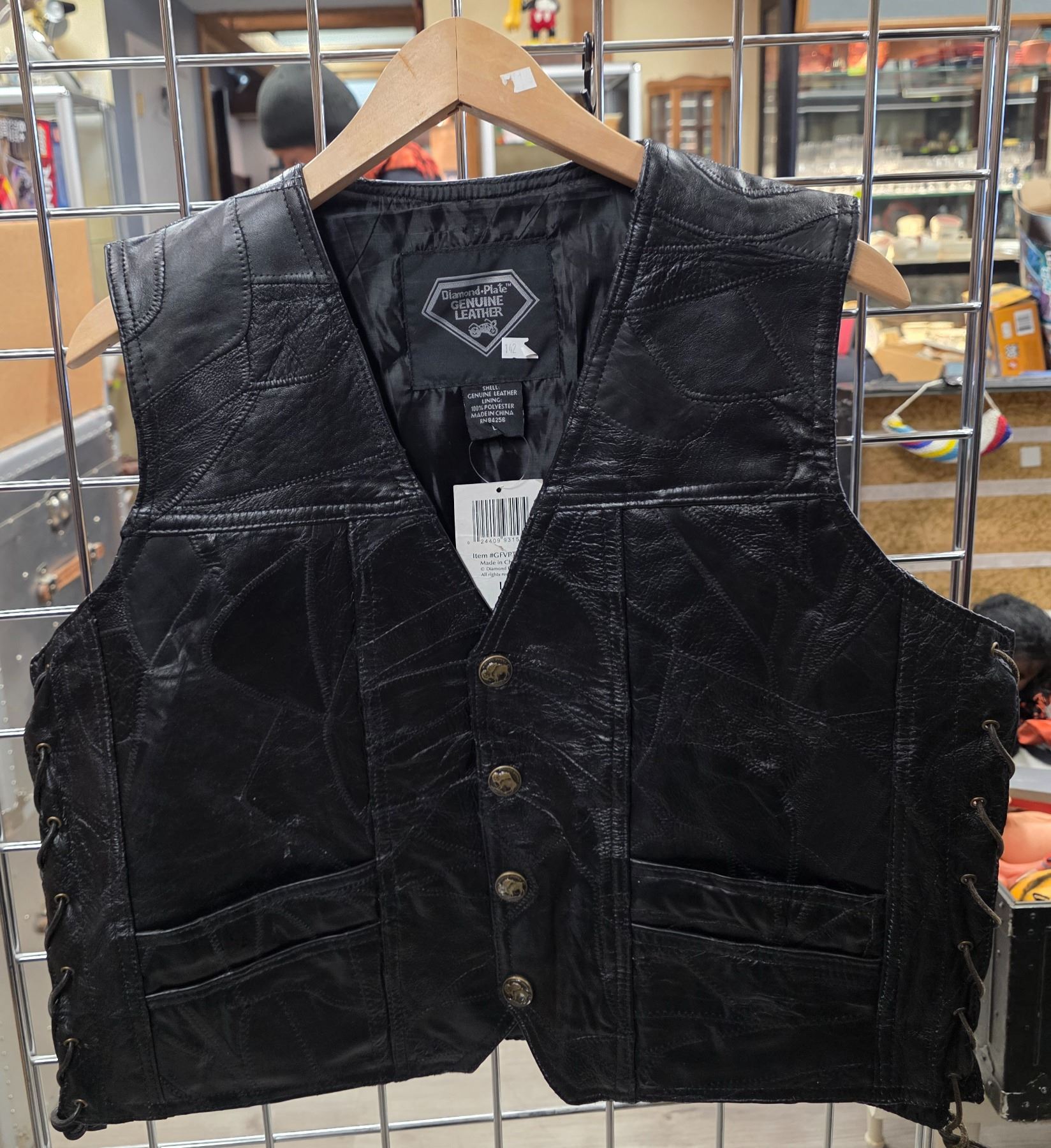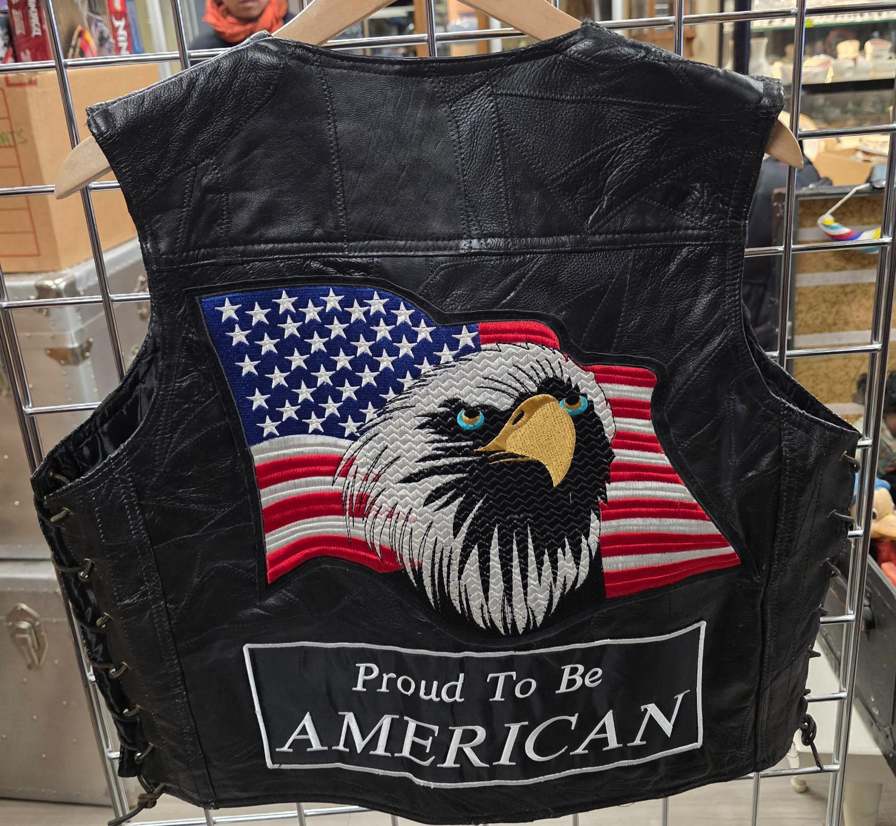 2 Leather Jackets and 1 Vest (Black Danier Leather size M, "Proud to be American Embroidered Bikes Vest, and Vintage Brown Leather Jacket)