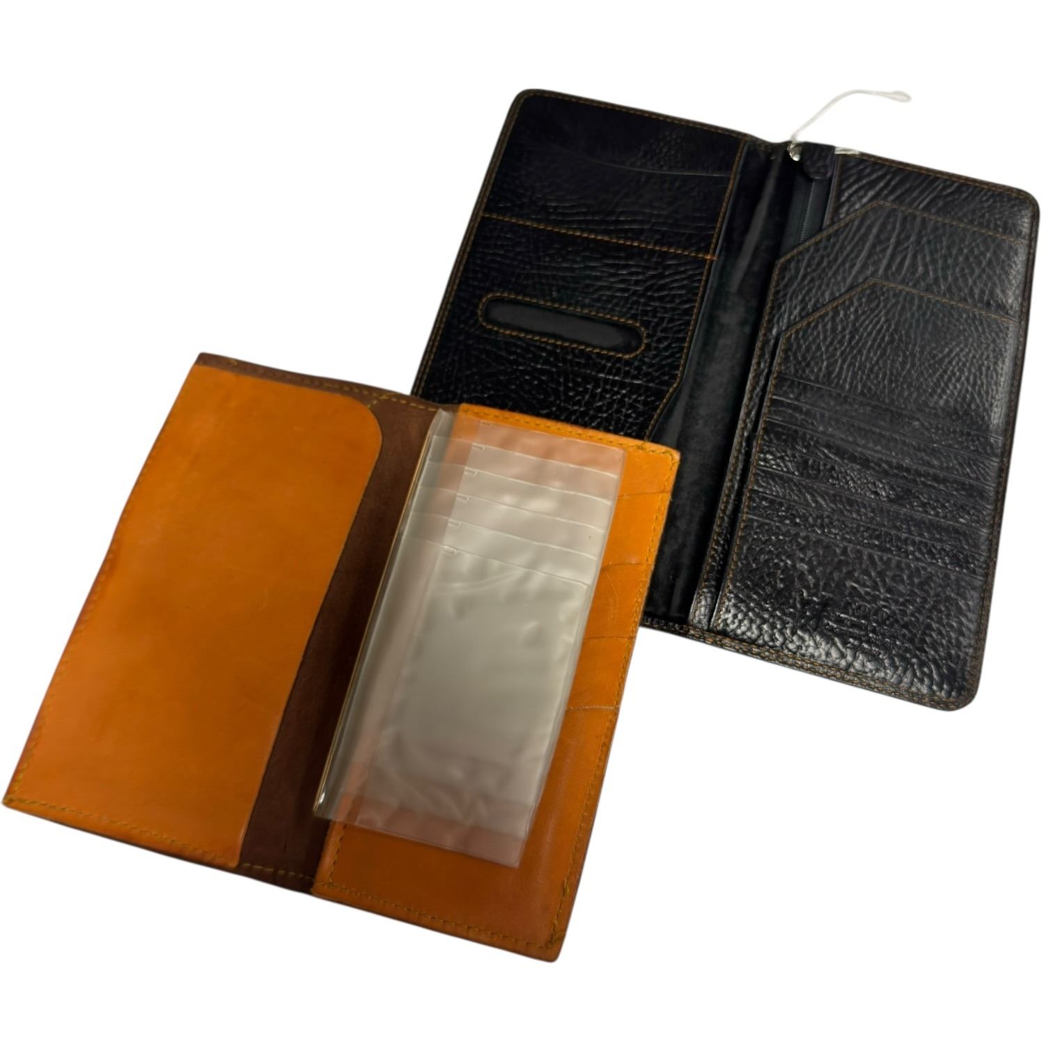 2 Leather Wallets * Brown Pebble Leather Long Wallet & Two-Tone Brown Leather Wallet