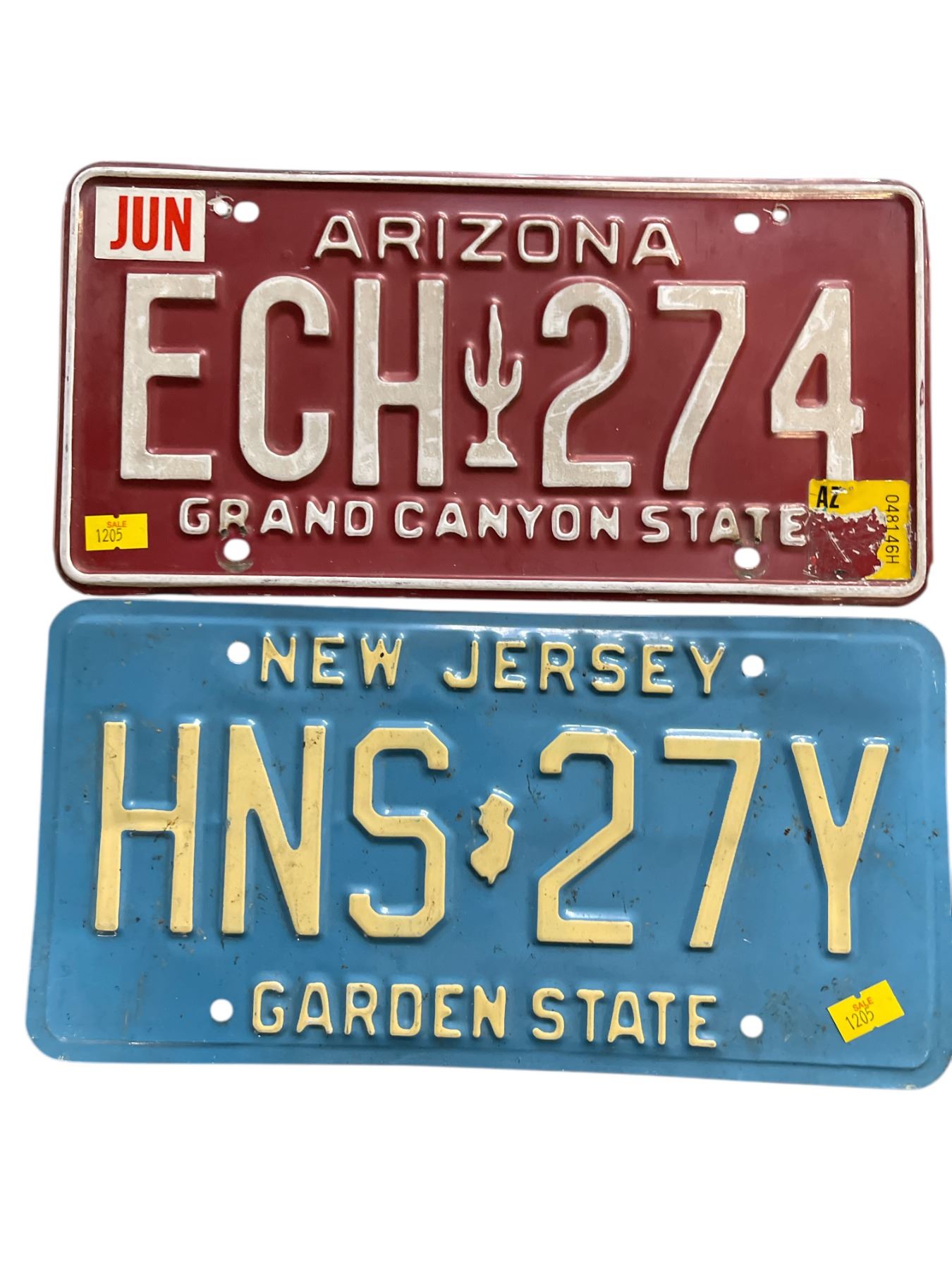 2 License Plates: Arizona "ECH 274" and New Jersey "HNS 27Y"