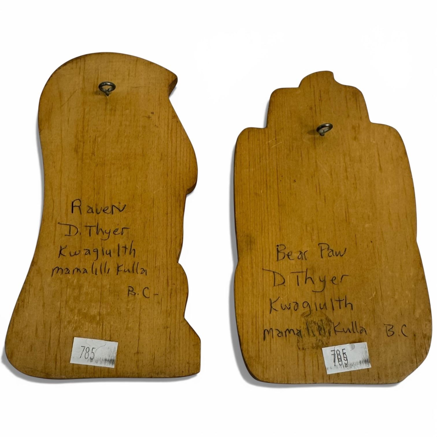 2 Northwest Coast Carved Wood Wall Plaques "Raven & Bear Paw" by D. Thyer Mamalitlikulla. BC. (Average size: 4" x 6")