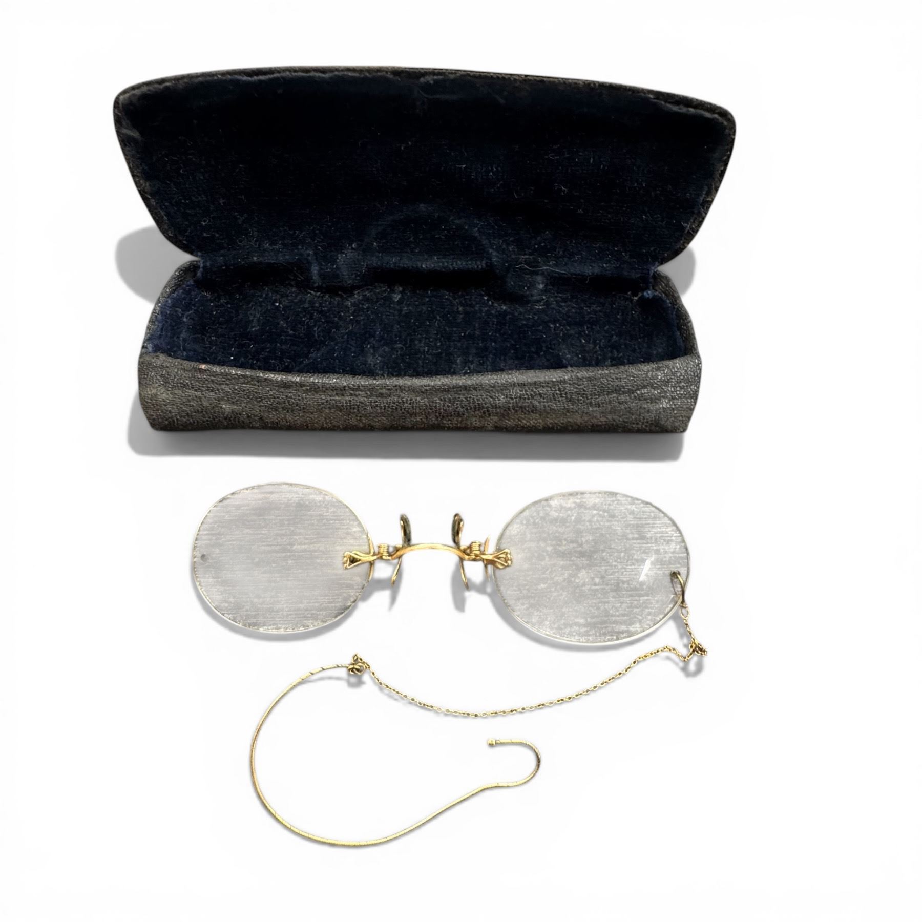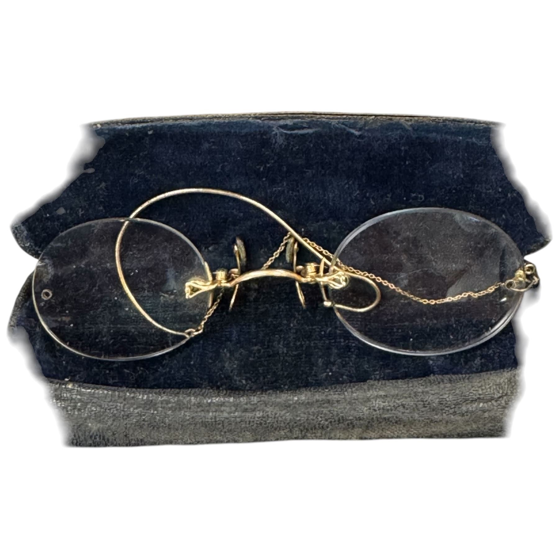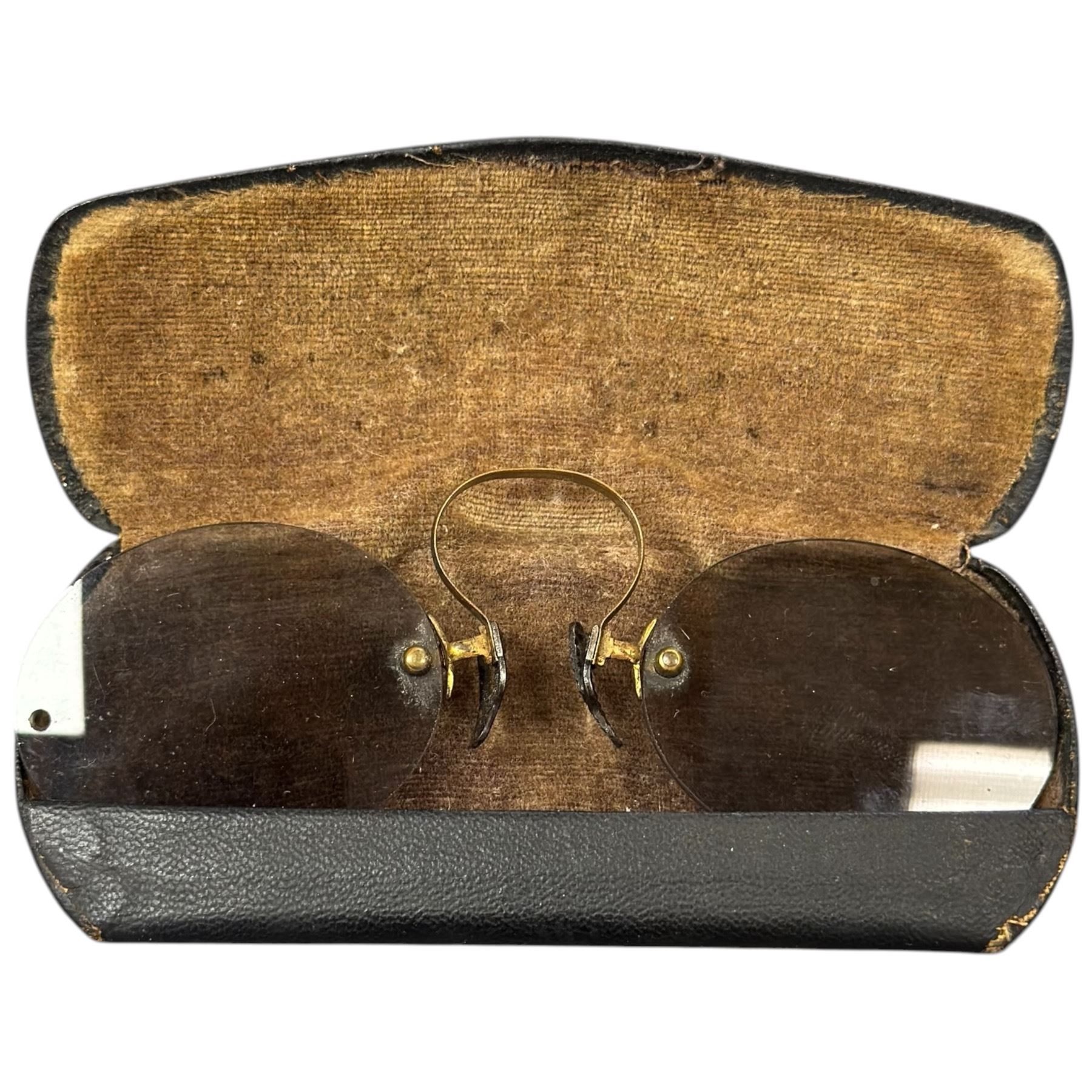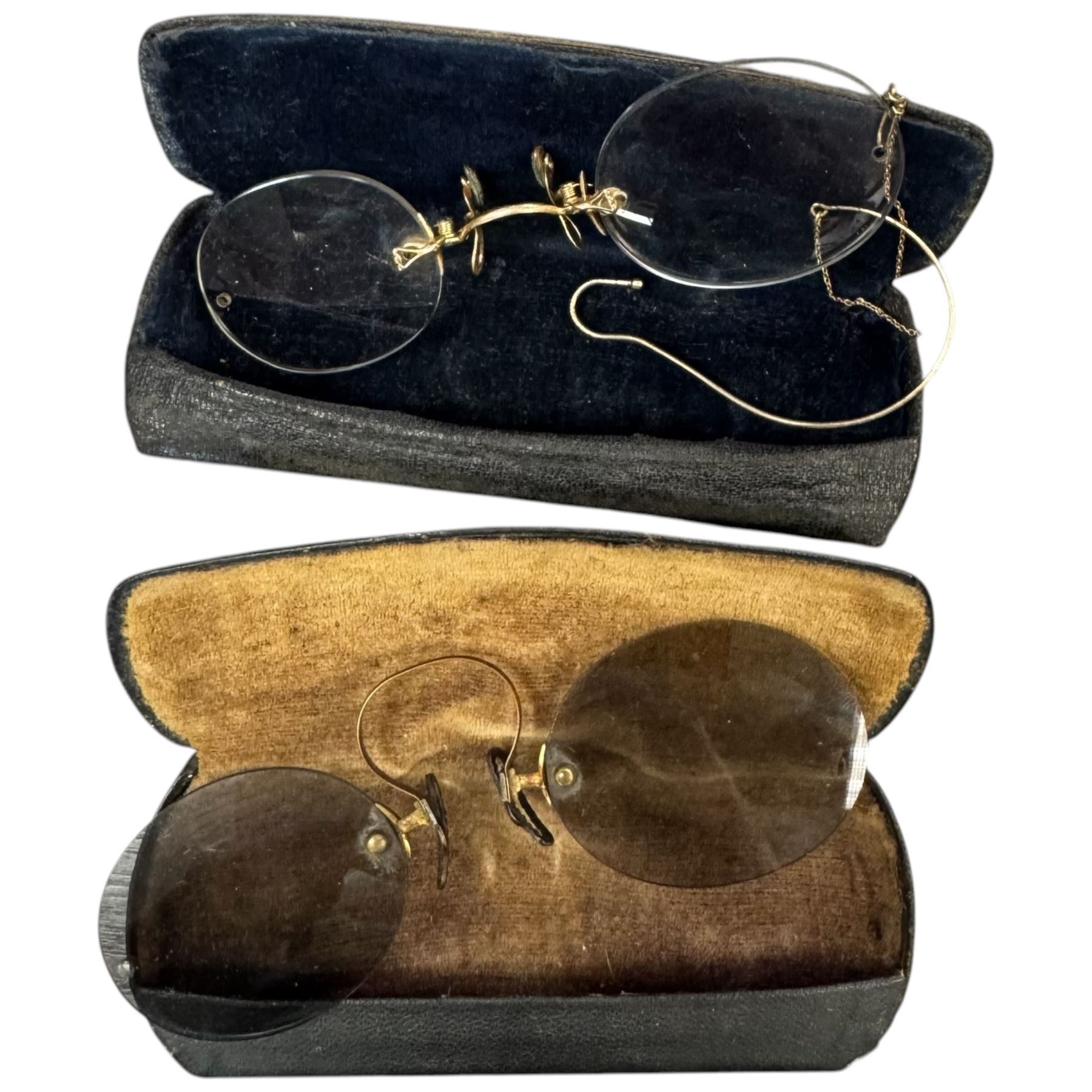 2 Pairs of Antique Pince-nez Reading Glasses in Original Cases * 1 is gold filled and one is gold plated with tinted lenses