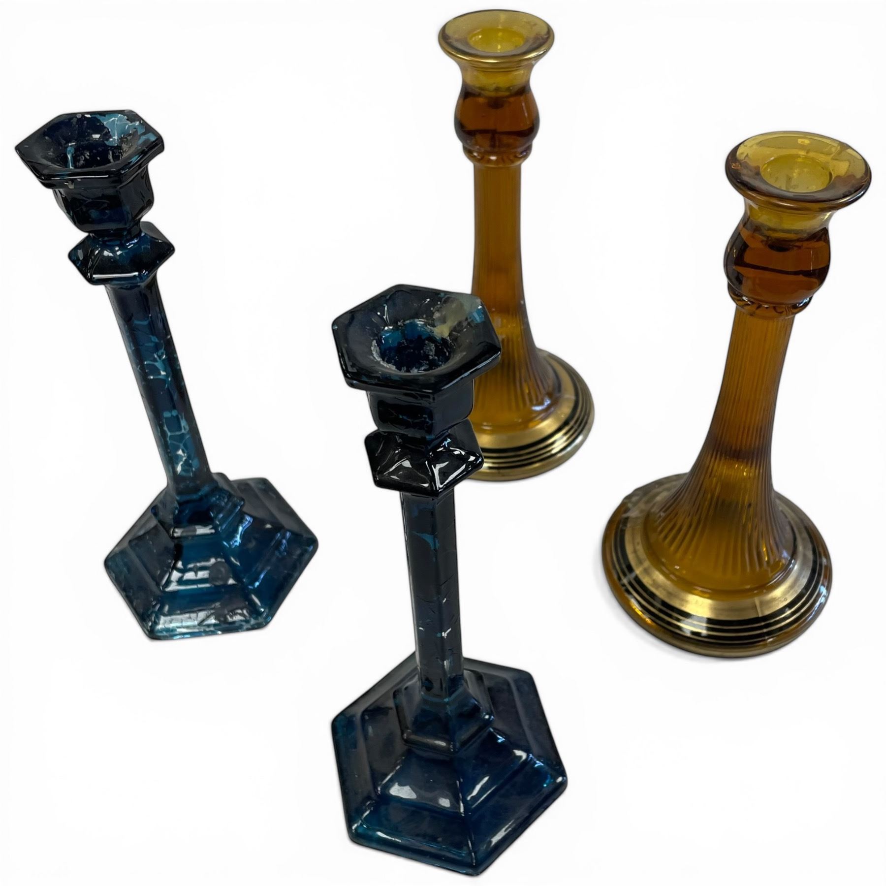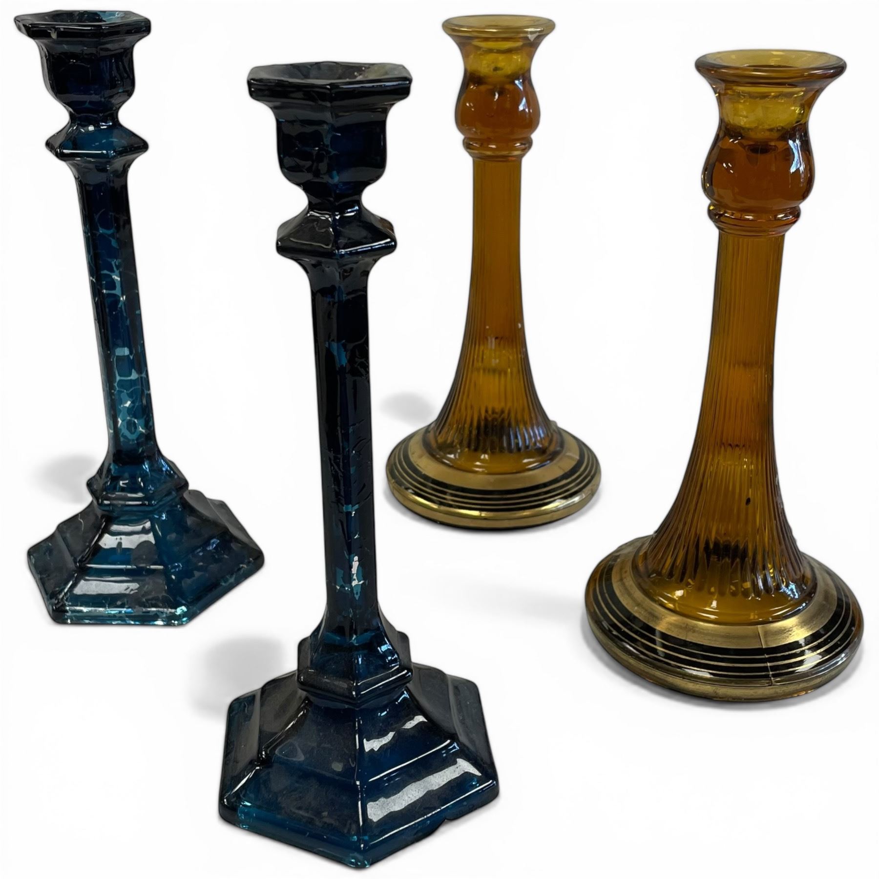 2 Pairs of Vintage Glass 10" Candle Holders