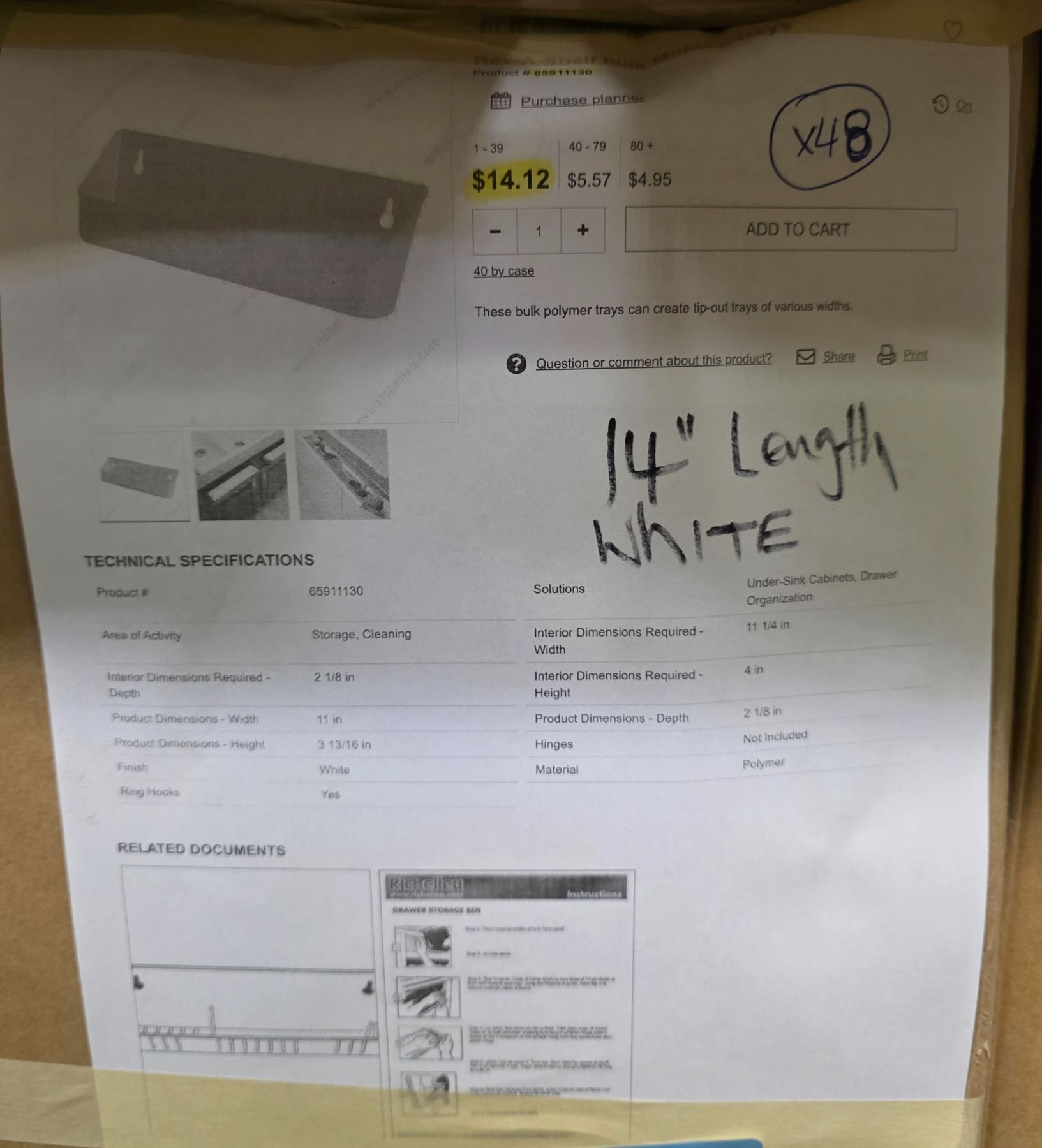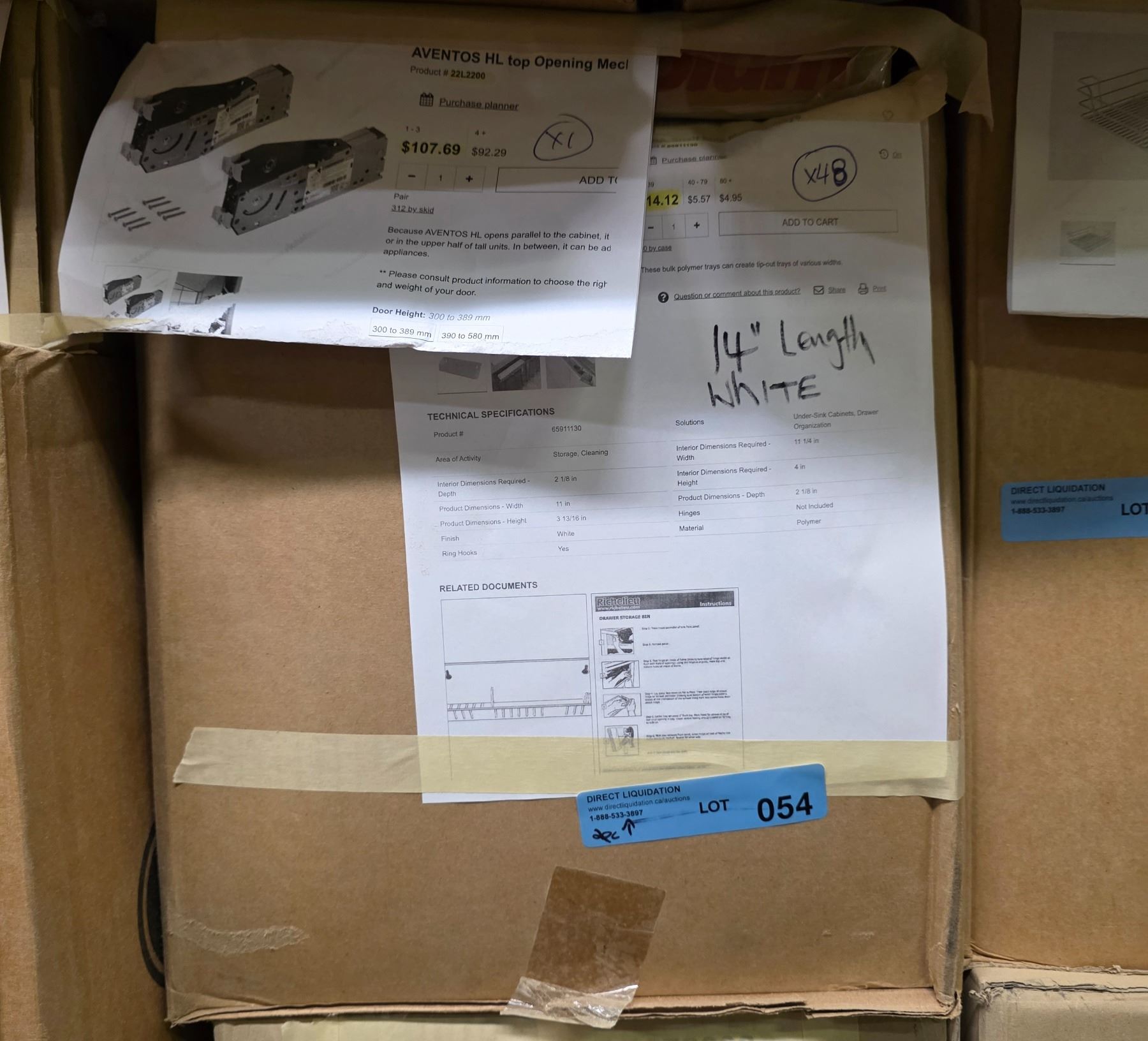 2 Pc - Aventos Opening mechanism & (x48)Rev-A-Shelf Flip out drawer storage tray - Wholesale Value: $770