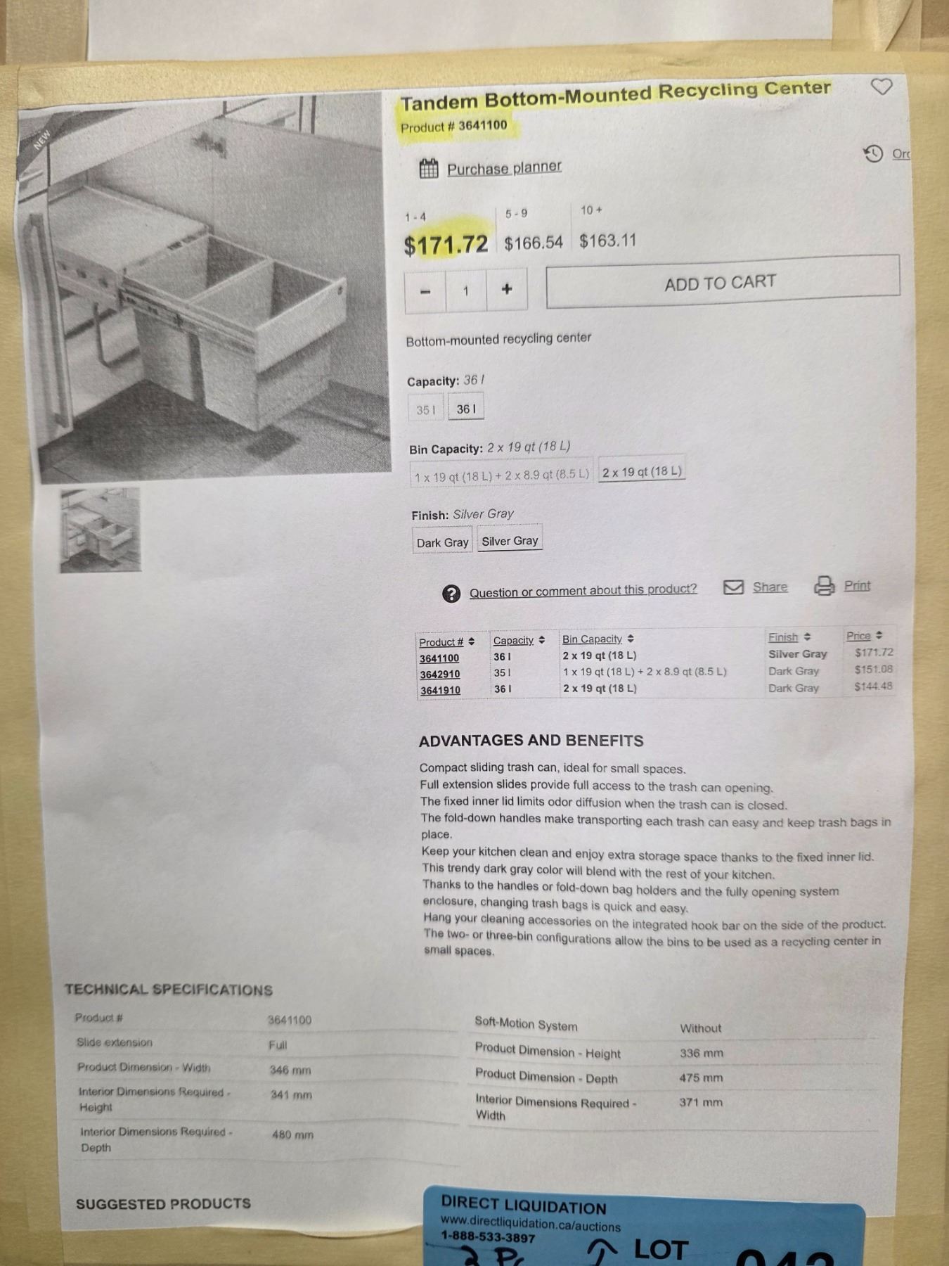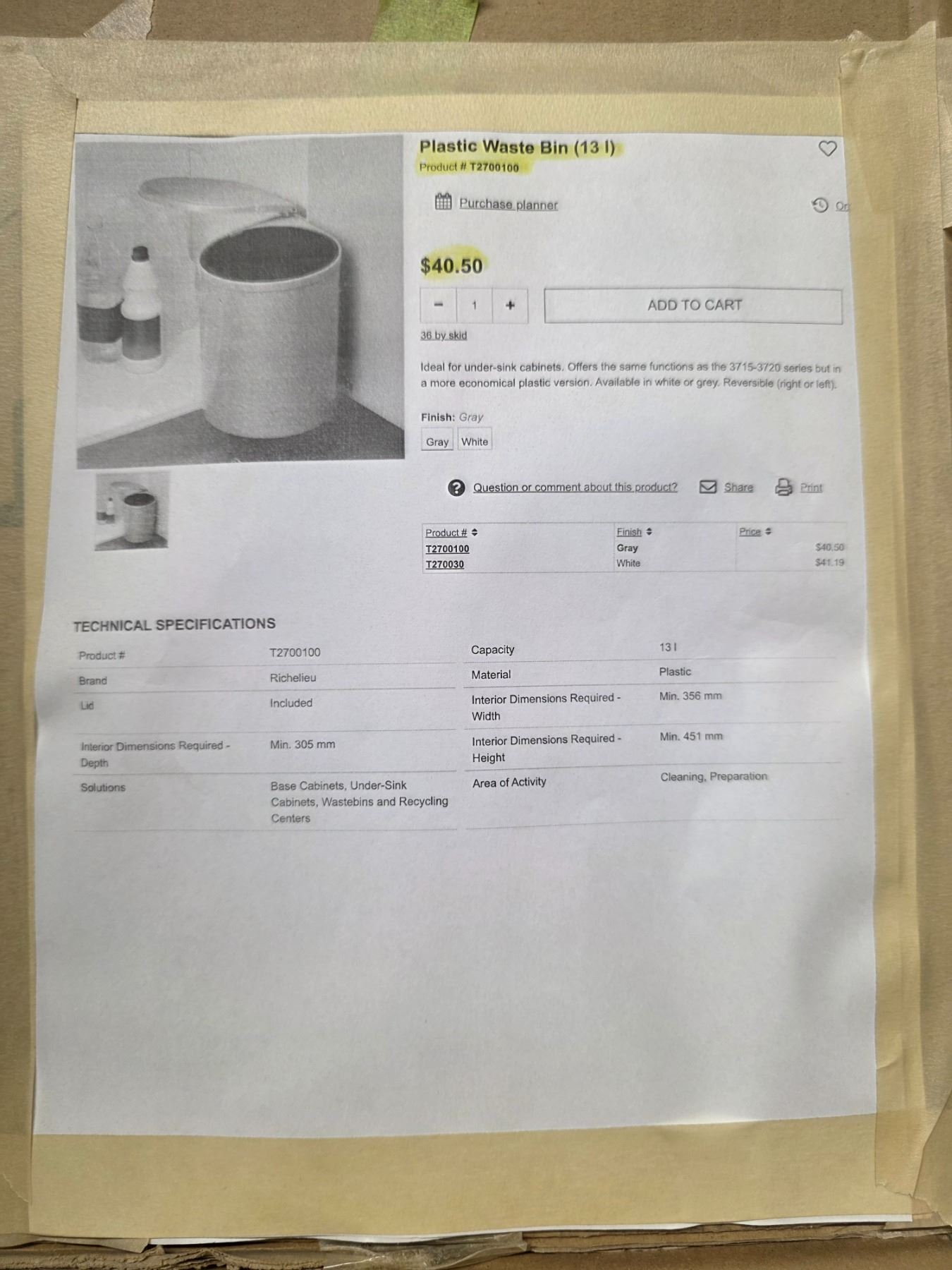 2 Pc - Corner cabinet 13L garbage bin & tandem bottom mounted recycling center - Wholesale Value: $230