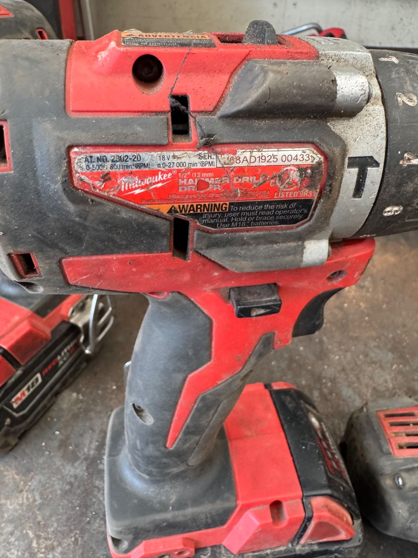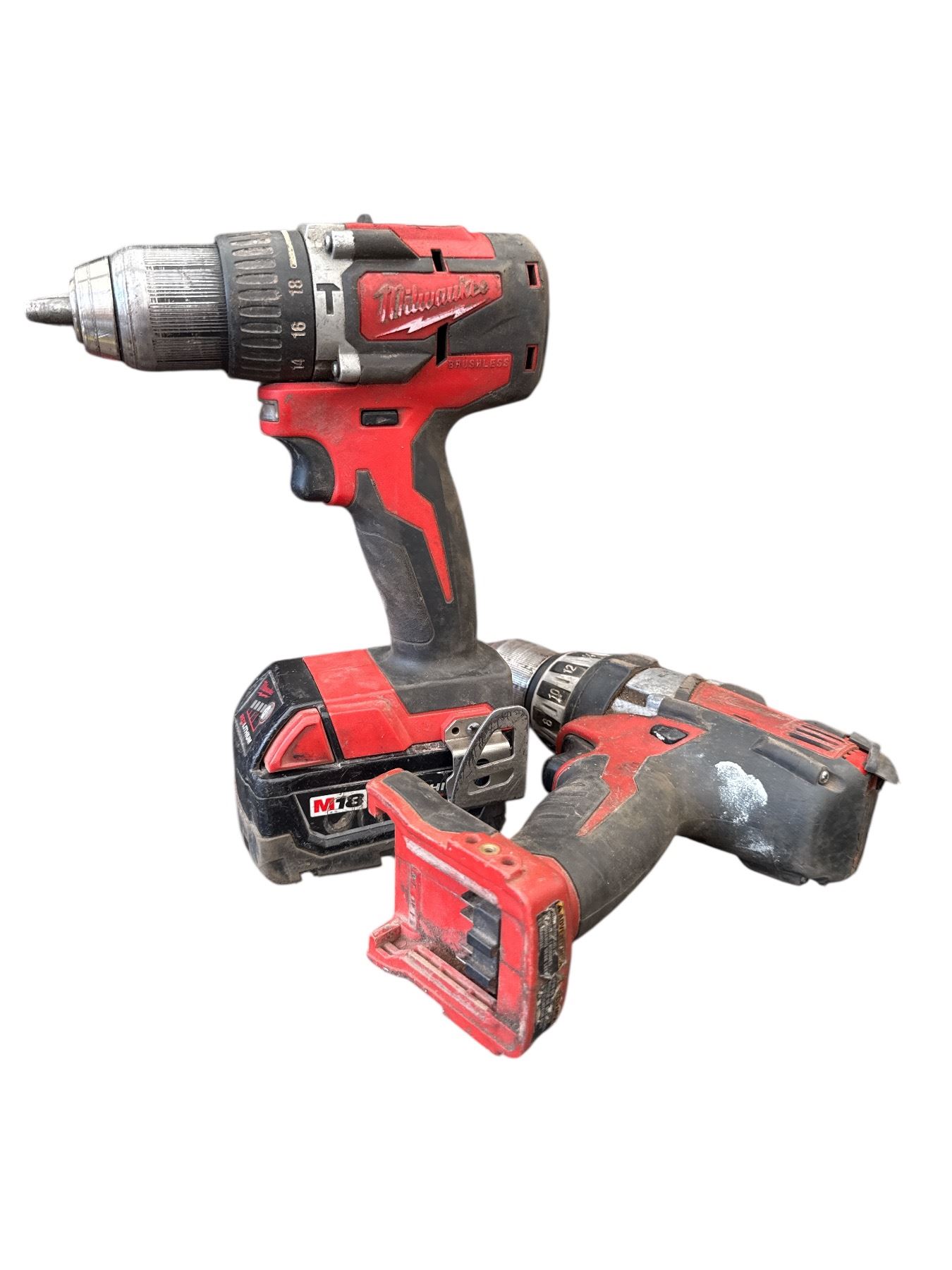 2 Pc - Milwaukee M18 Hammer Drills - x1 w/ M18 XC5.0 Battery