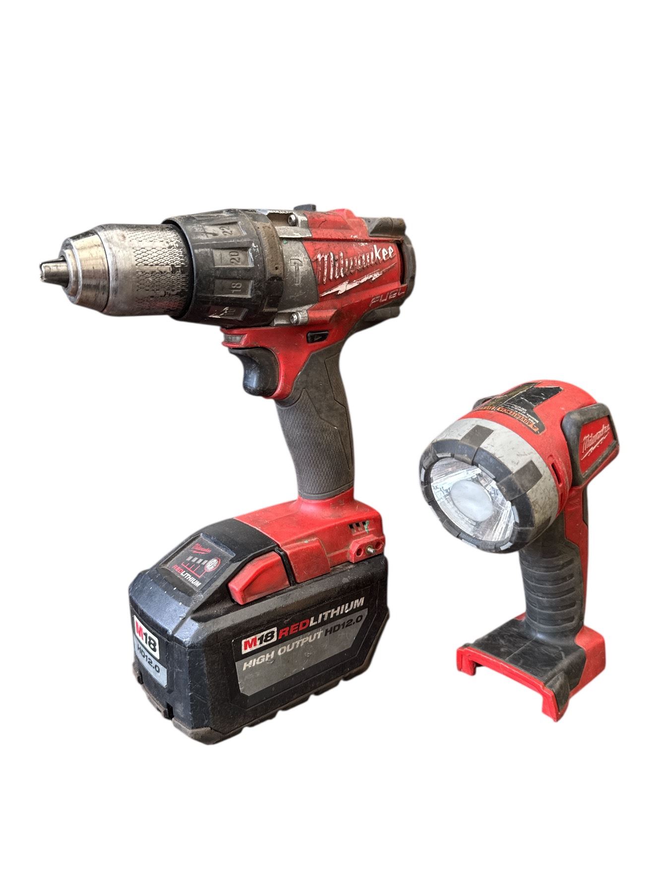 2 Pc - Milwaukee M18 hammer Drill on M18 HD12.0 Battery & M18 Flashlight