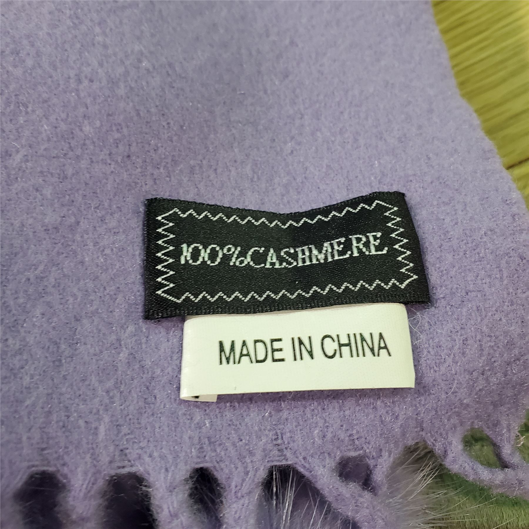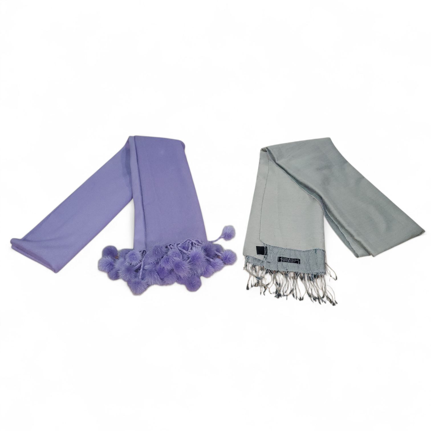 2 Pcs 100% Cashmere Scarves - Lilac Pom-Pom Trim & Grey Fringed