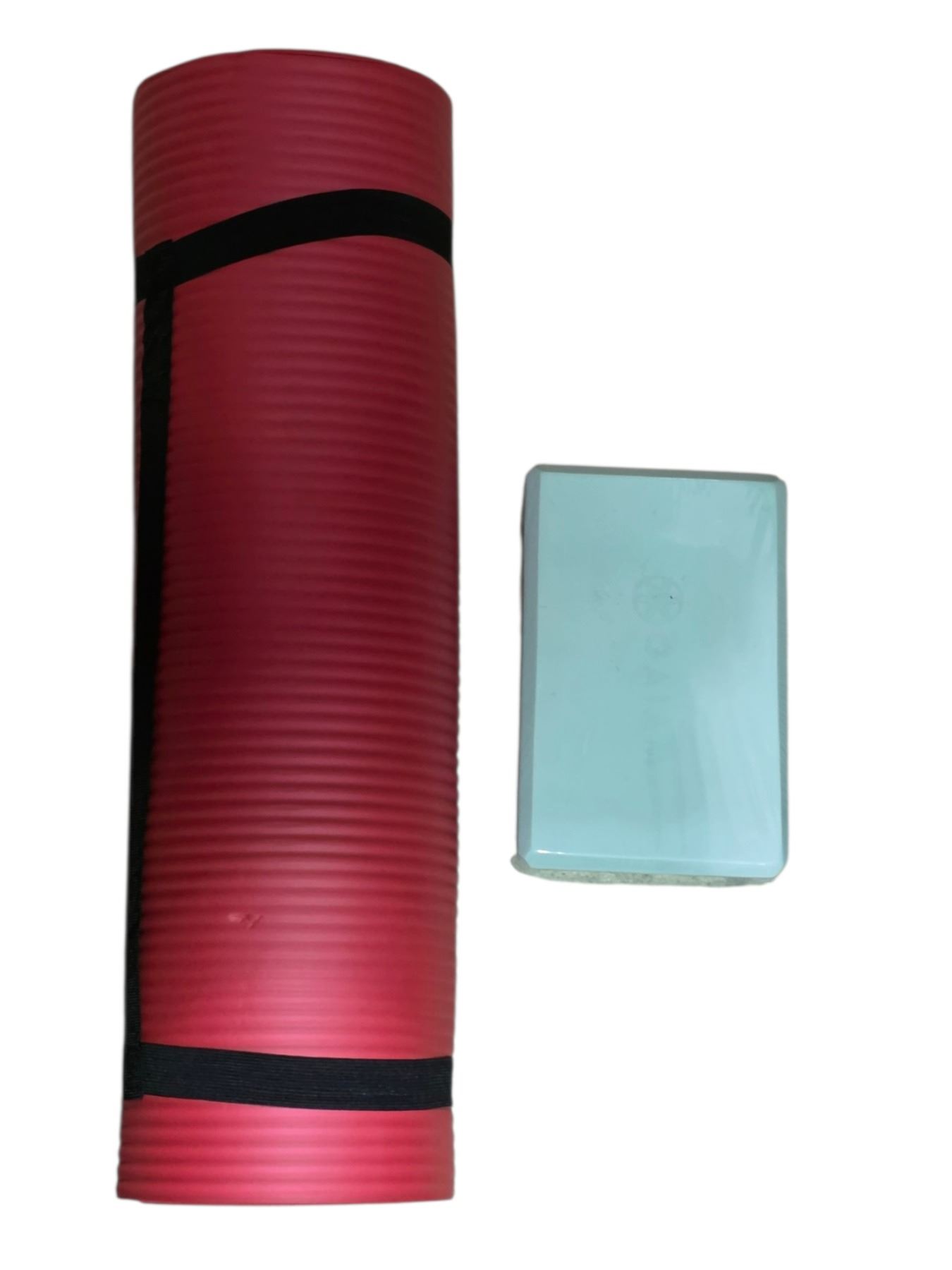 2-Pcs New Amazon Basics Thick Exercise Yoga Mat Red and 2-Pcs Foam Yoga Block