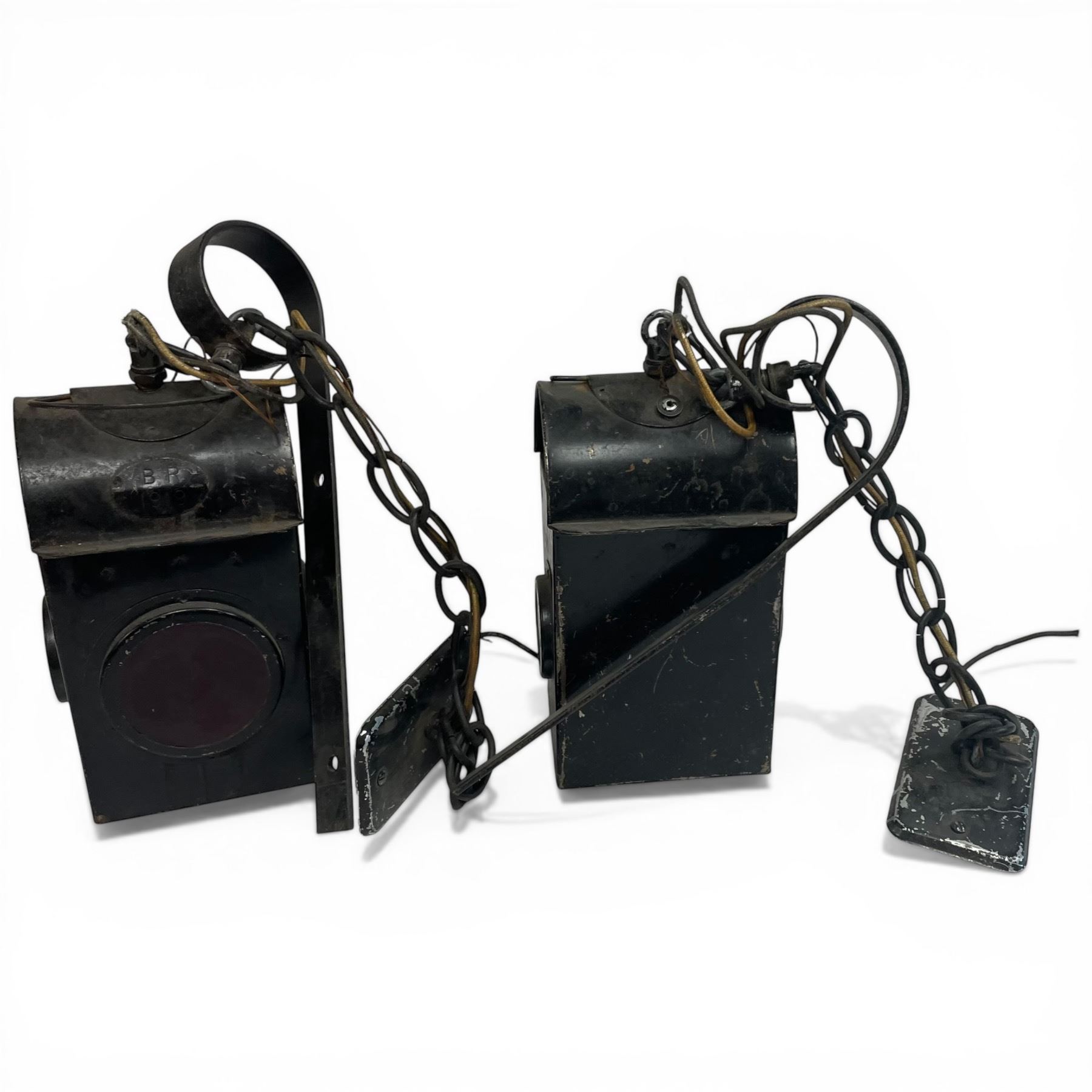 2 Railway Marker Paraffin Lamps Rewired for Home Use * Stamped BR 1919