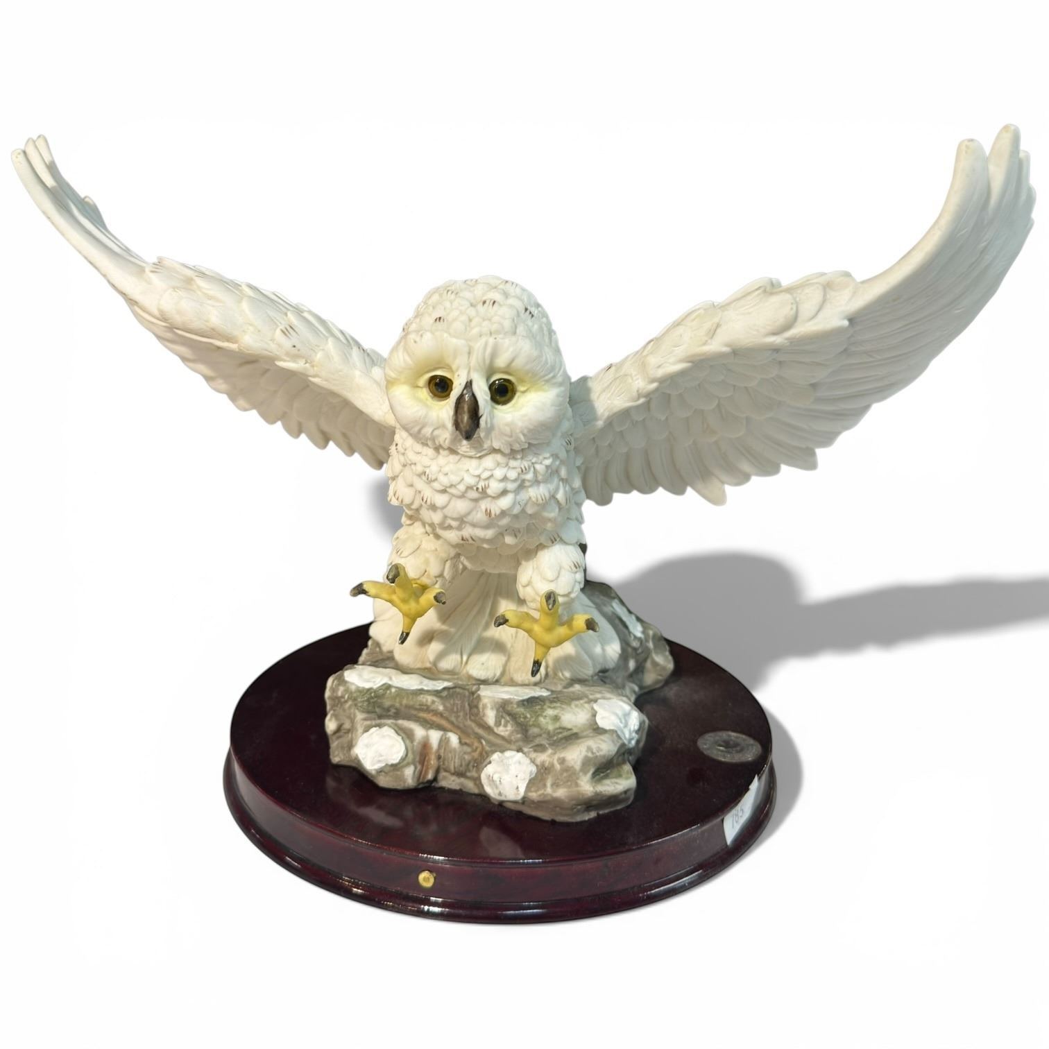 2 Resin Snowy Owl Statuettes * The larger is by Canadian Wilderness and measures 9" tall x 13" wide