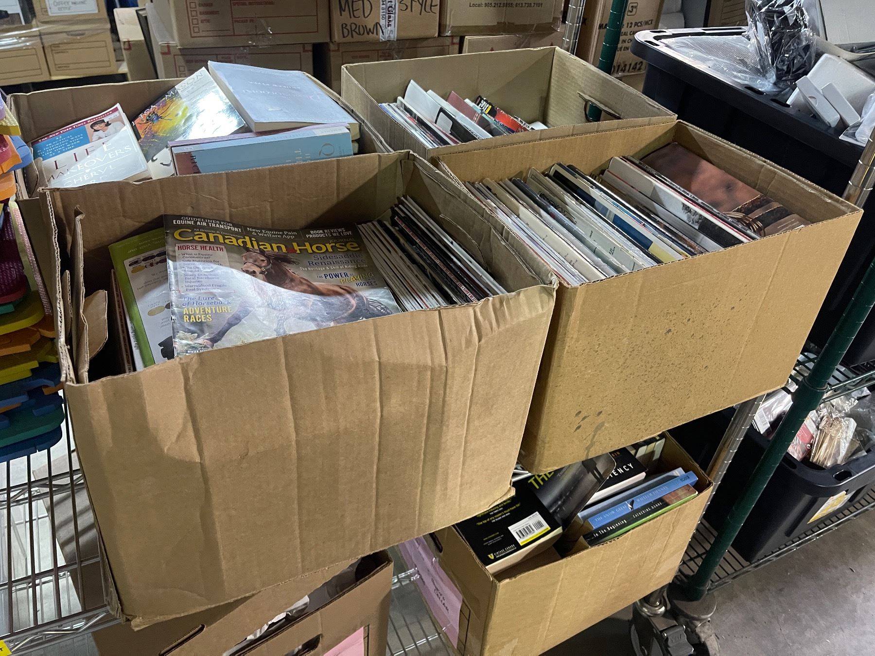 2-Shelf Set Dec Assortment: 6 Boxes of Books and Magazine, Foam Mats, and More - From "The Chicken Sisters"