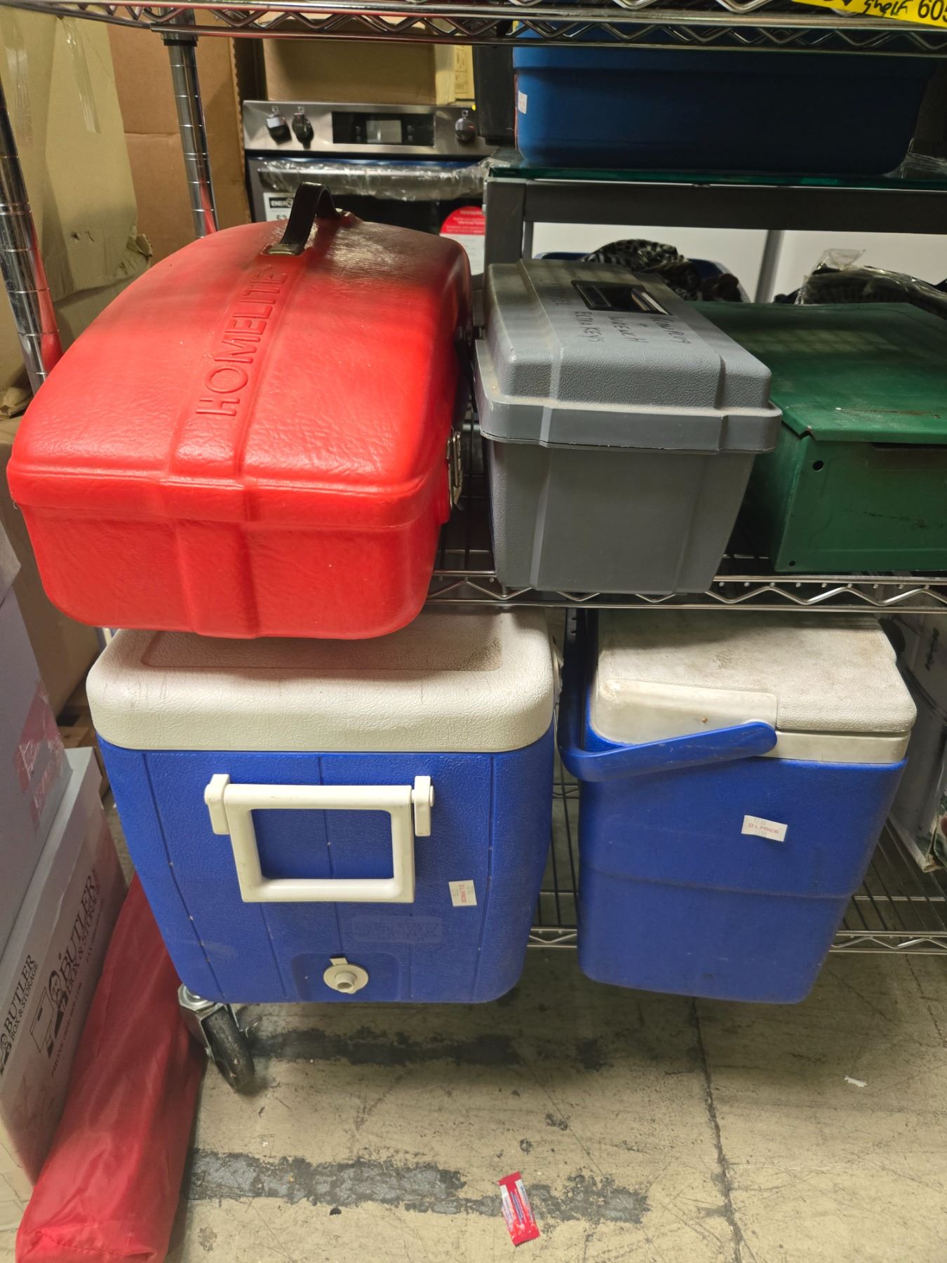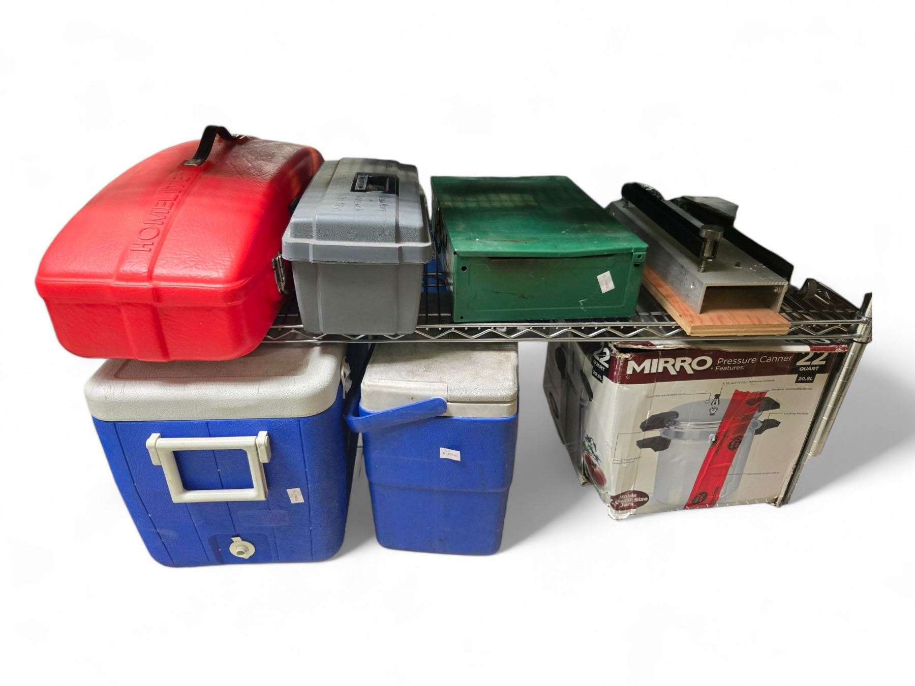 2 Shelves - Includes Chainsaw, Tools, Tool Boxes, Cooler, Cooker etc