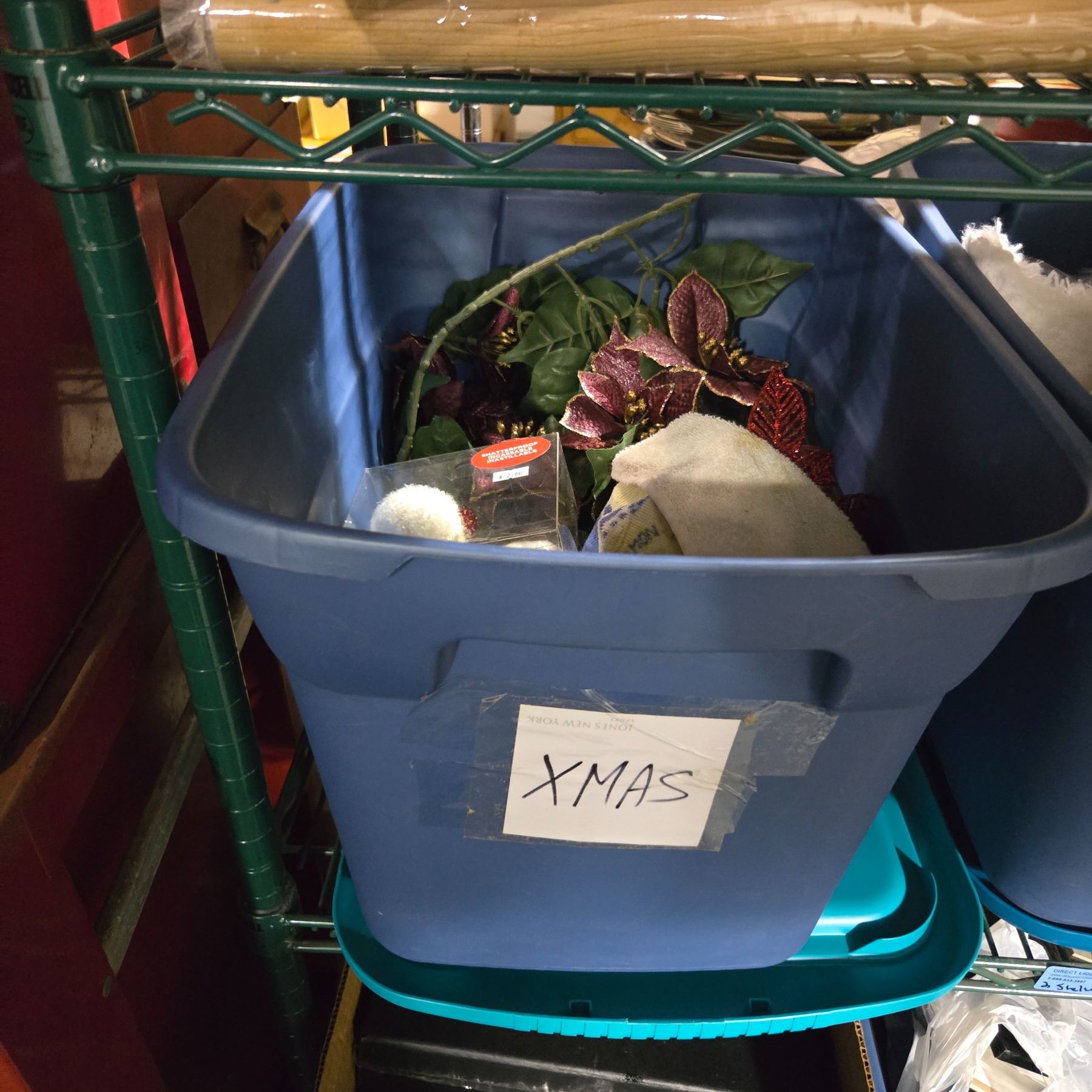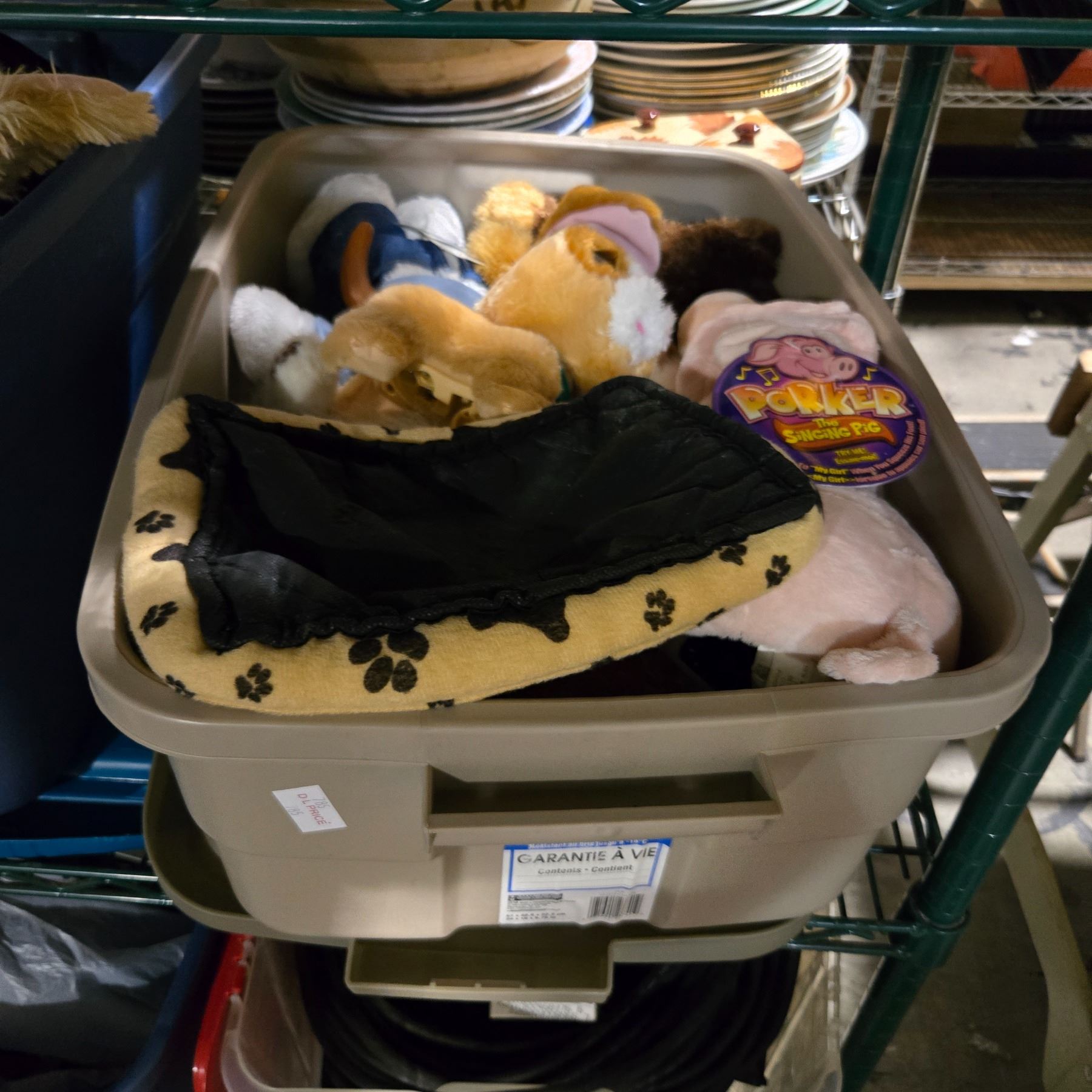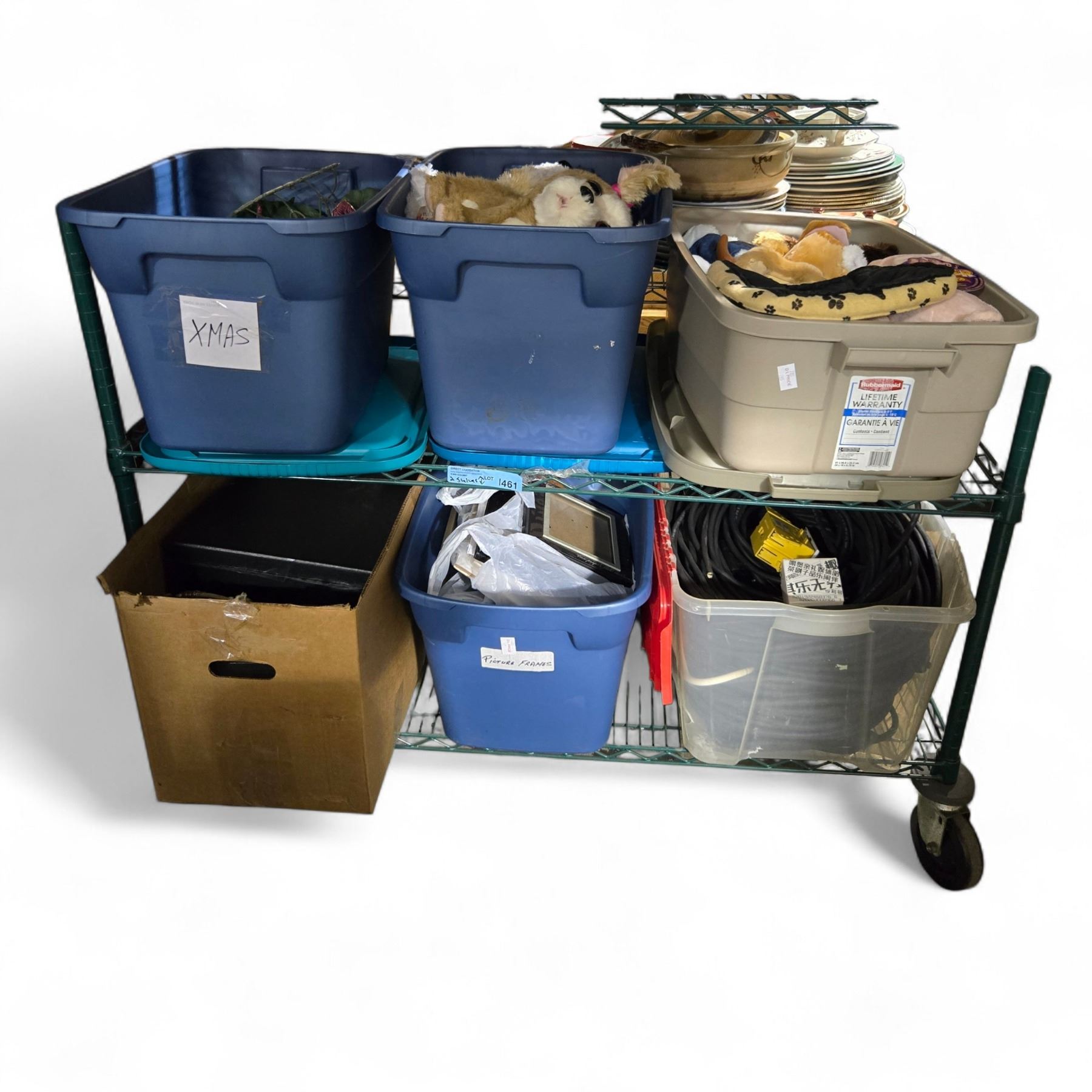 2 Shelves of Misc - Christmas Decor, Stuffed Toys, Cable, Picture Frames, Etc.
