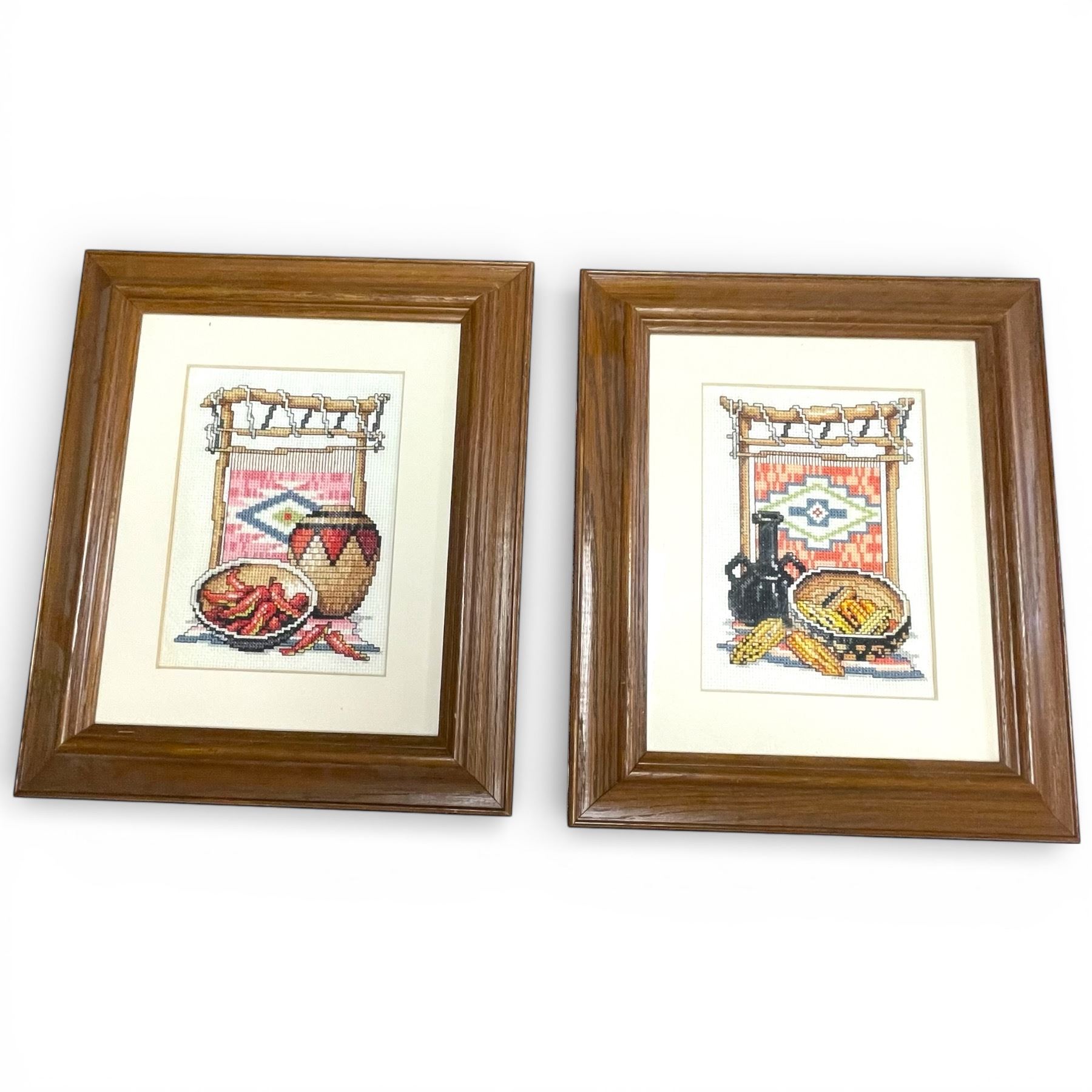 2 Southwestern Style Needlepoint Pictures * 11" x 13" framed