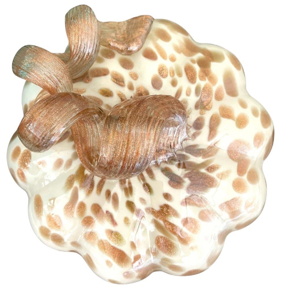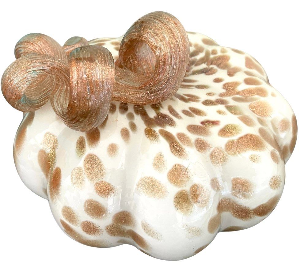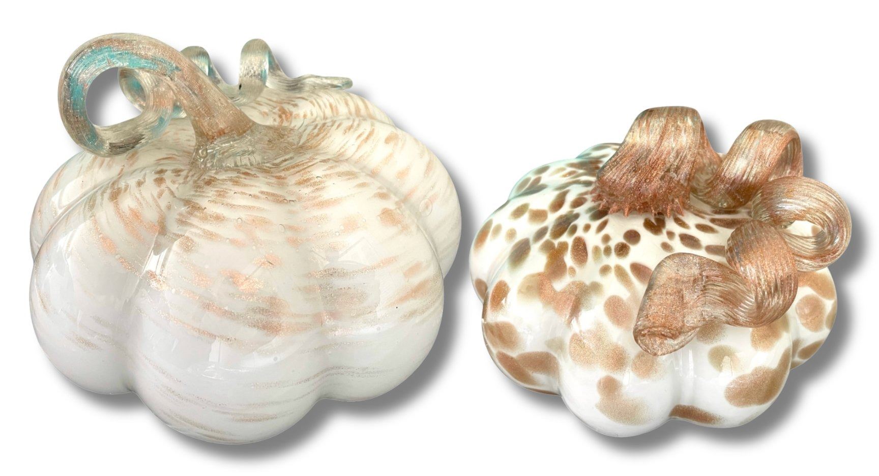 2 Sparkly Art Glass Pumpkins - 8" diameter x 5.5" tall