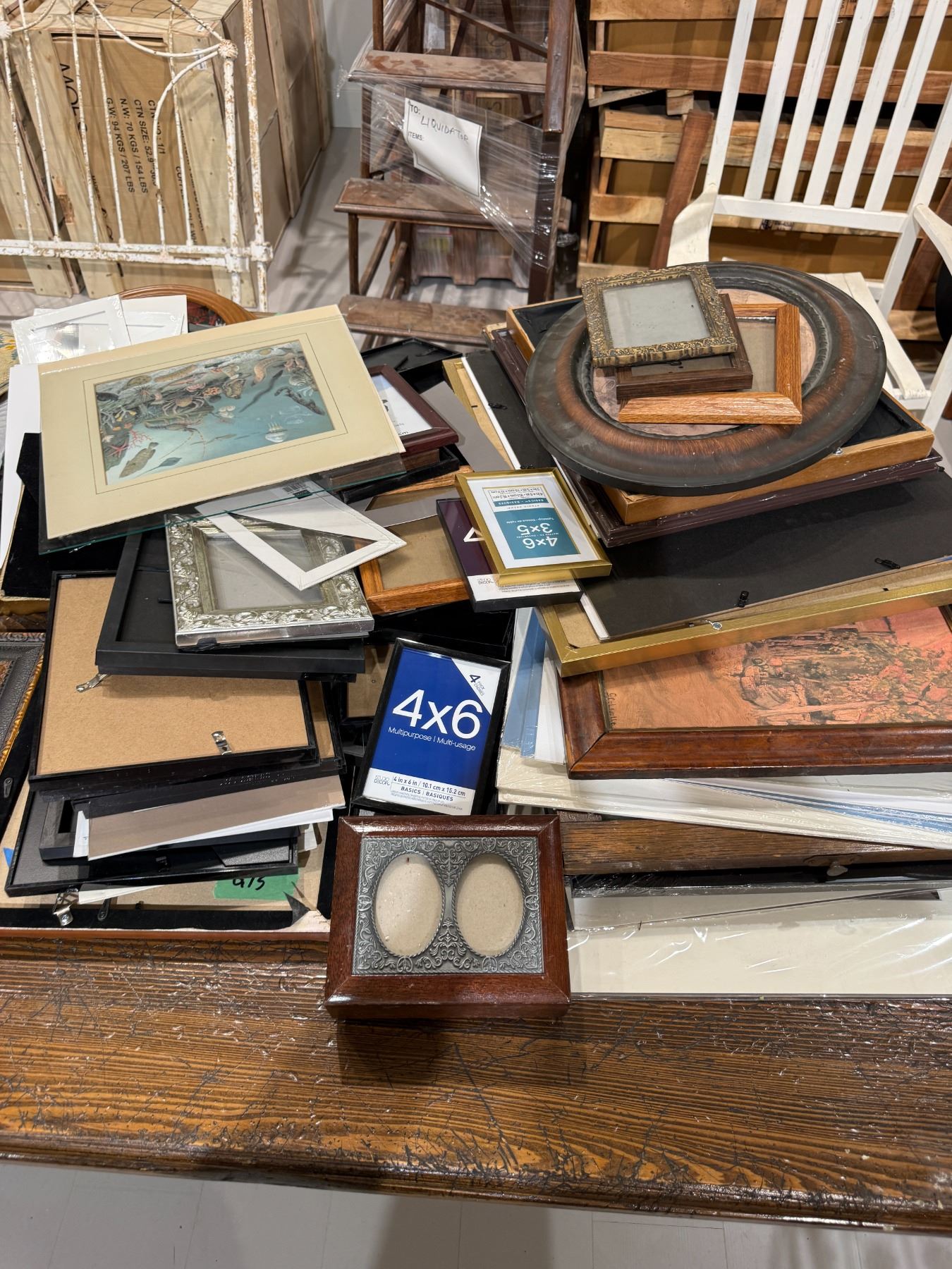 2 Stacks of Assorted Picture Frames * Wide range of sizes, materials, and eras * Majority are empty