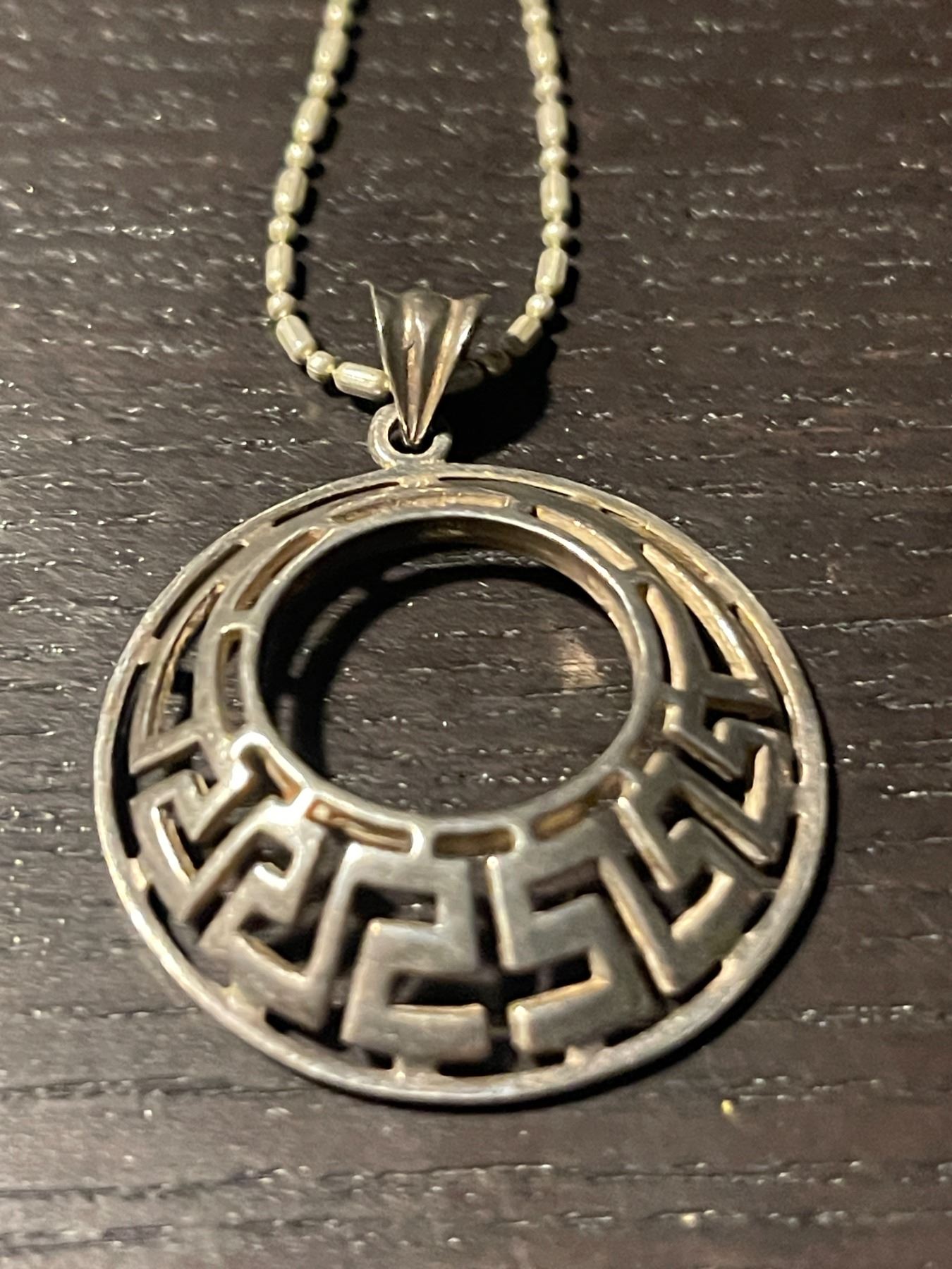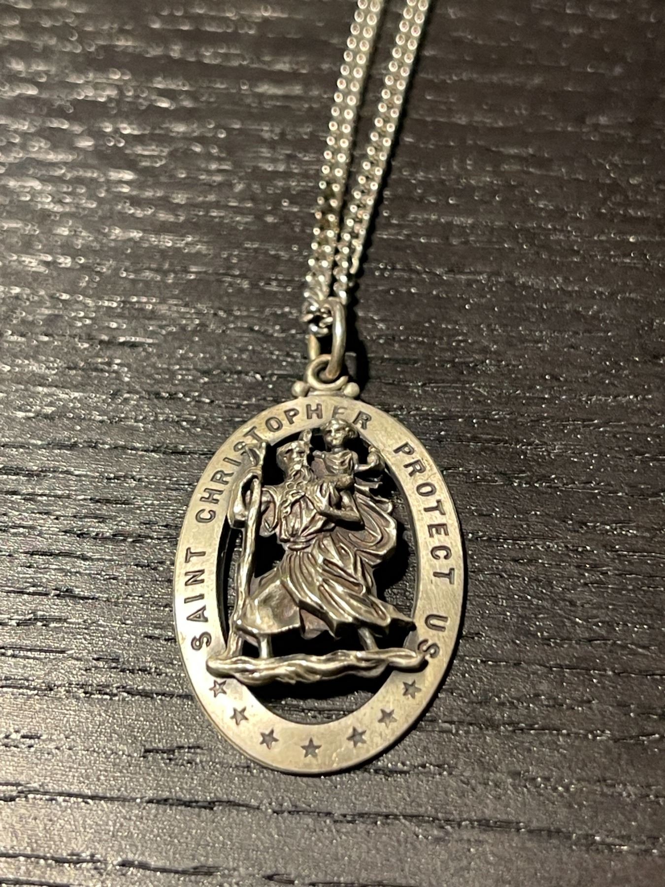 2 Sterling Silver Necklaces - 33 mm pendant on 22" chain & 28mm St. Christopher medal on 23" chain - Total weight: 21 grams