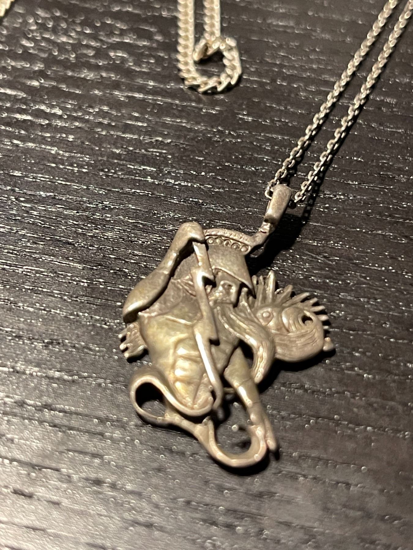 2 Sterling Silver Necklaces: Sea God and Heart - Total Weight 16 grams