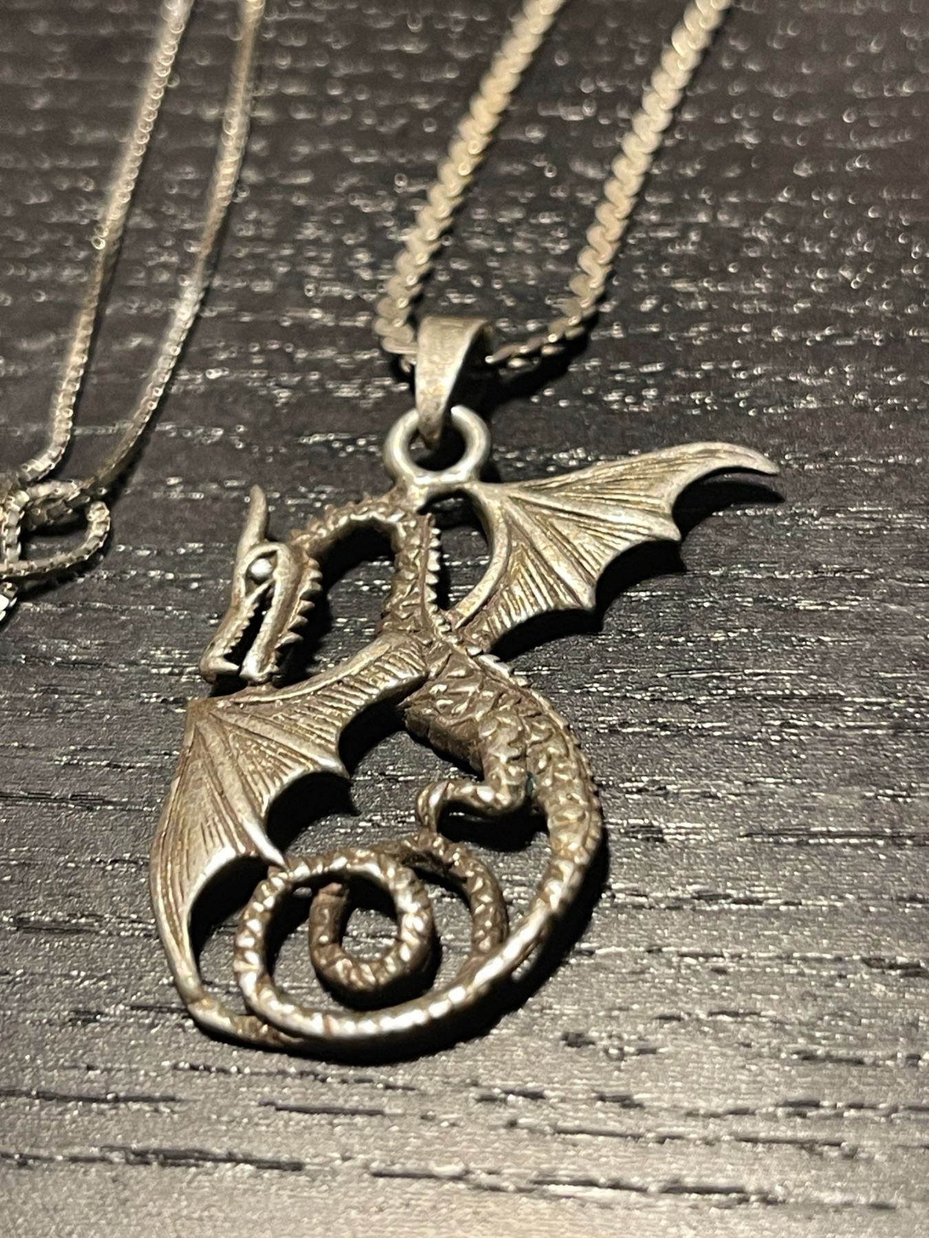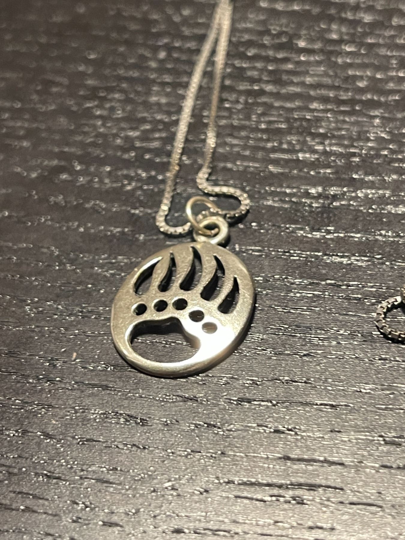 2 Sterling Siver Necklaces: Dragon on 17" chain & Bear Paw on 22" chain - Total weight: 16.6 grams