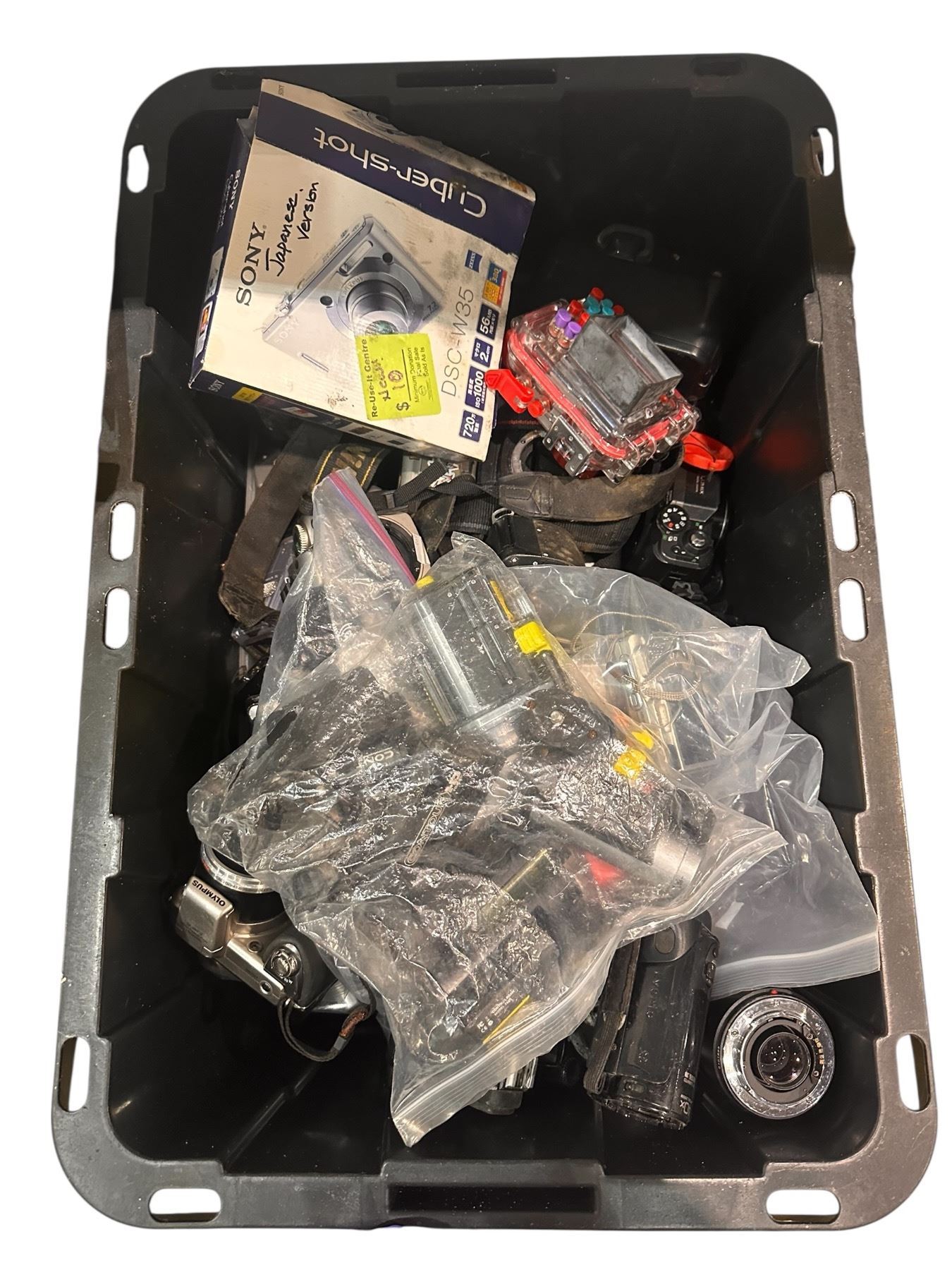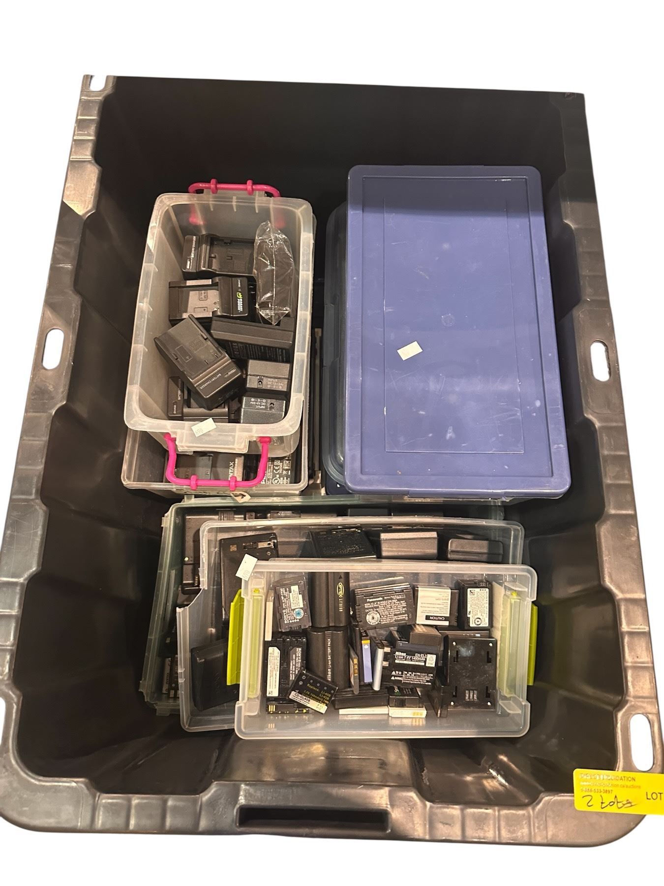 2 Totes of Misc Electronics - Battery Chargers, Batteries, Tote Full Cameras/Camcorders For Parts or Repair, Etc.