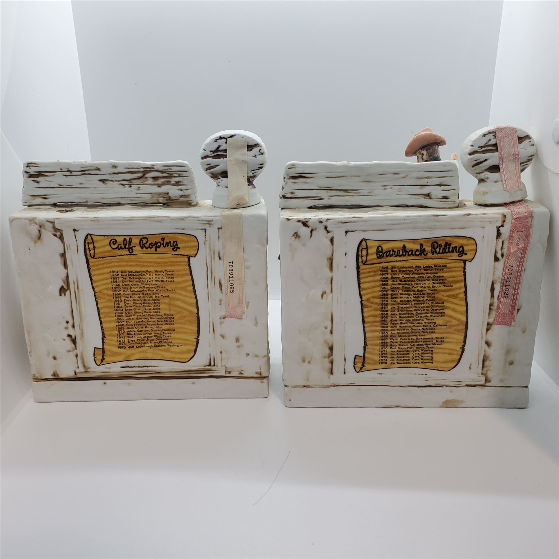 2 Vintage 1989 Pro Rodeo Series "Calf Roping & "Bareback Riding" Ceramic Decanters Empty