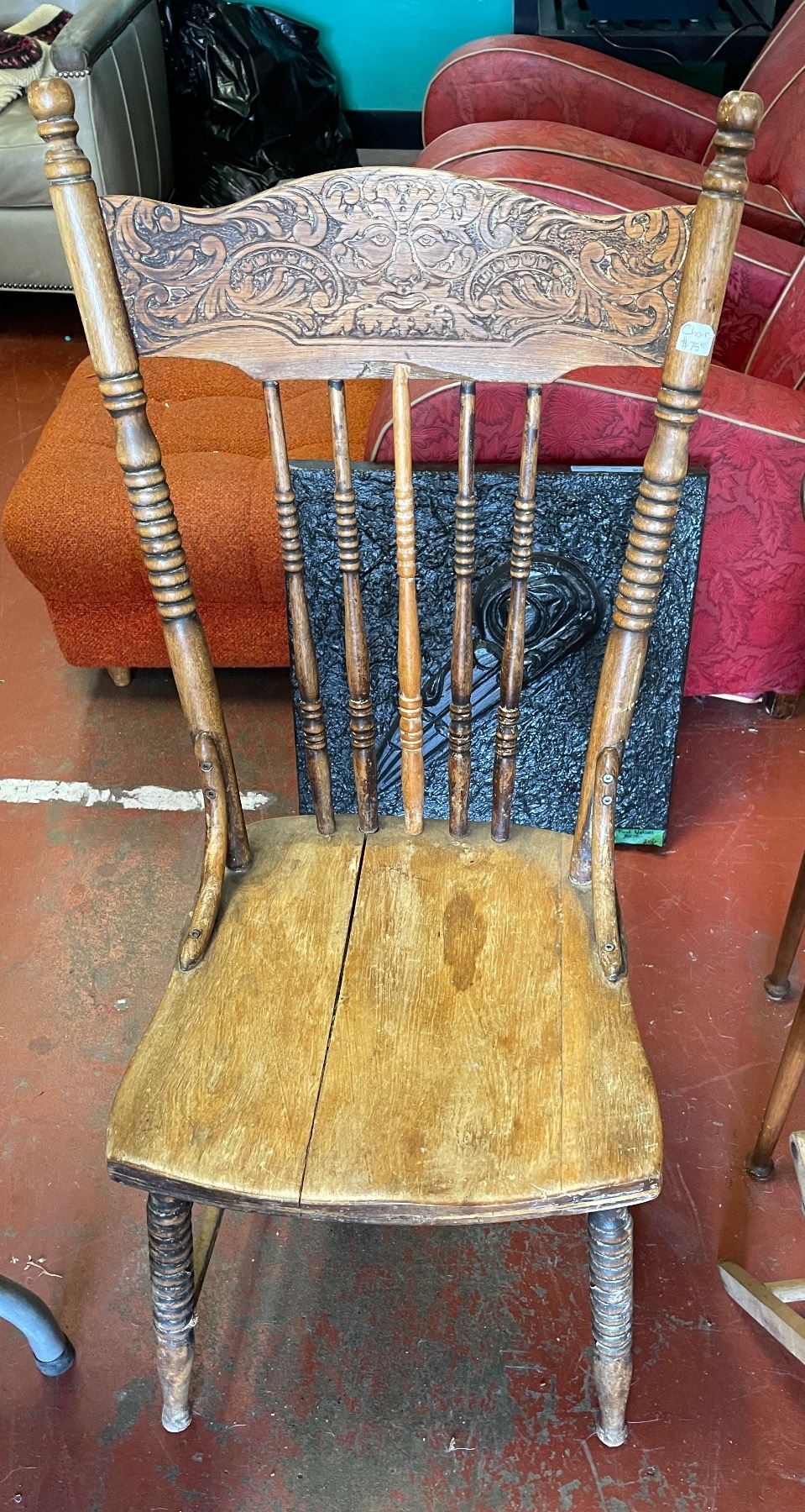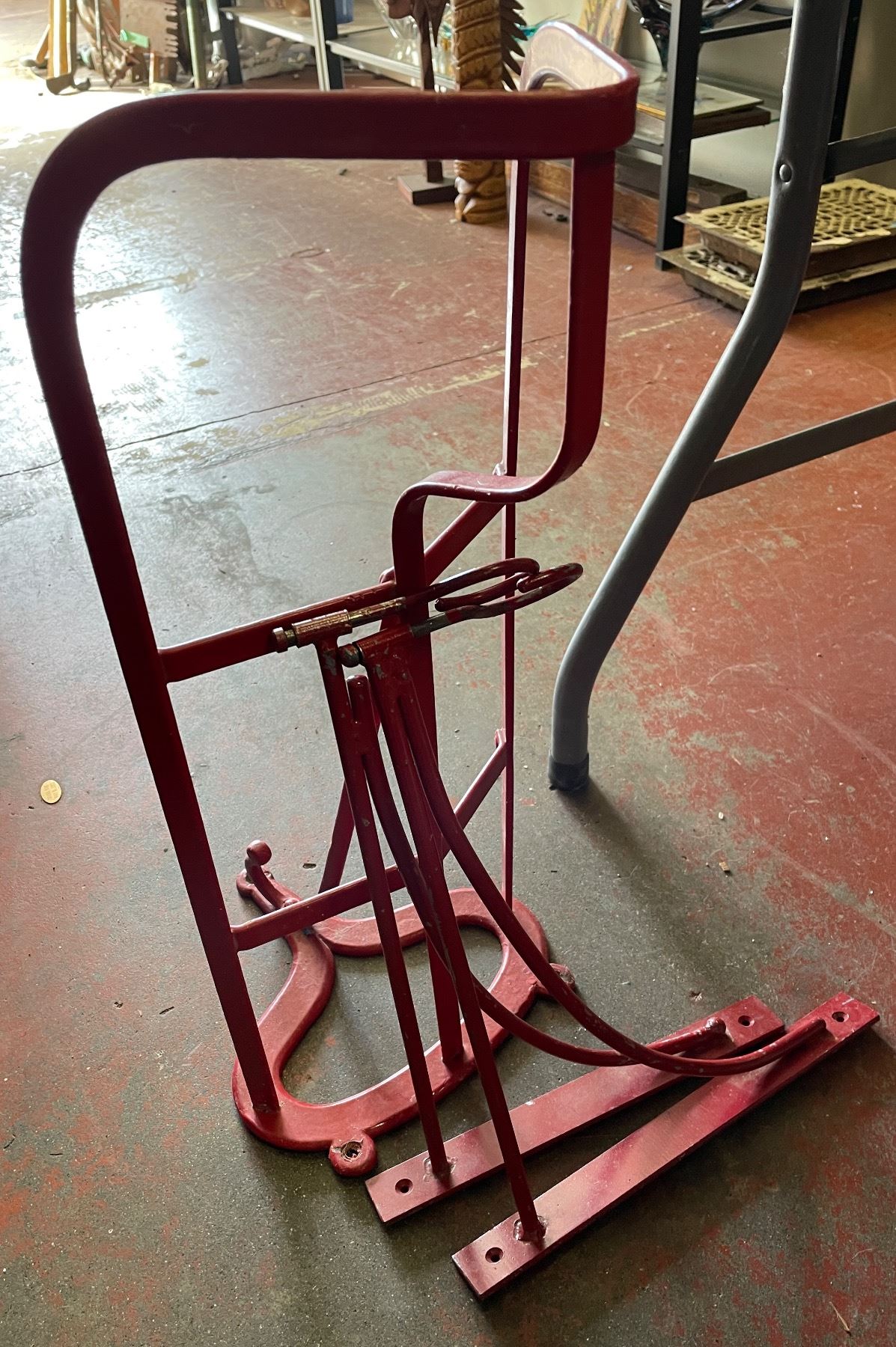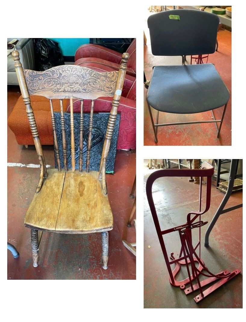 2 Vintage Chairs and Iron Side Saddle Wall Rack