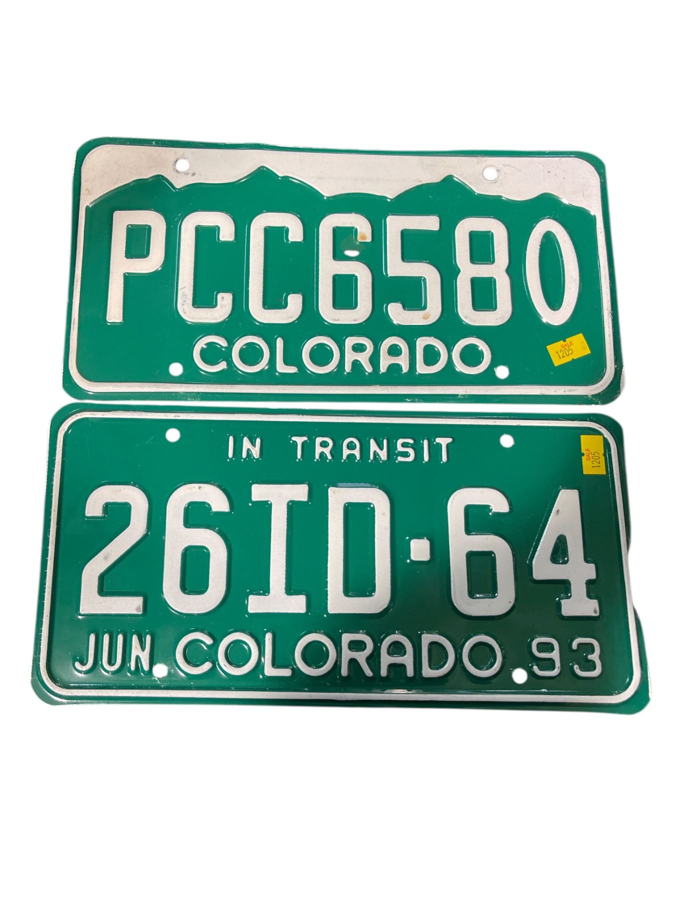 2 Vintage Colorado License Plates: 261D-64 (June 1993) and PCC 6580