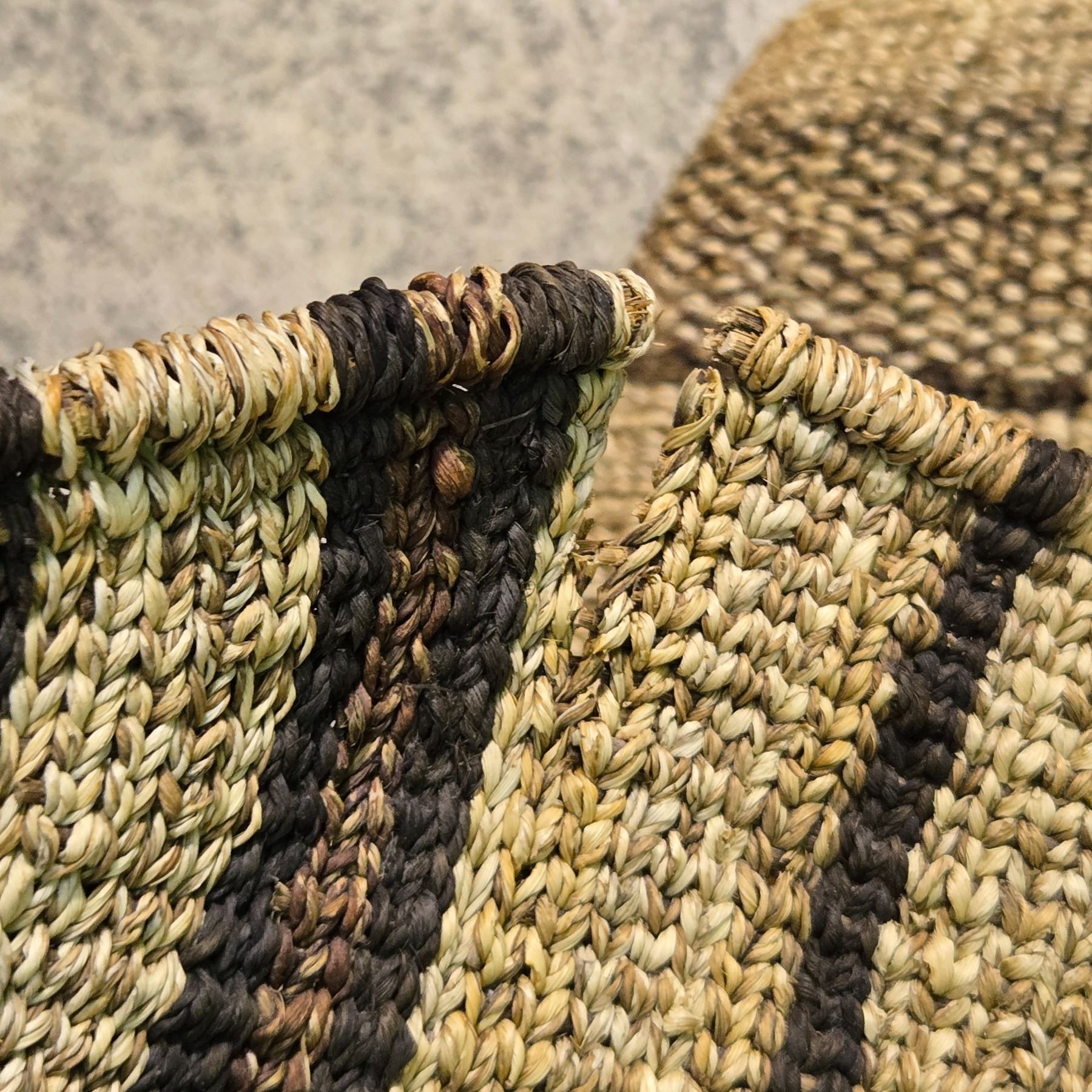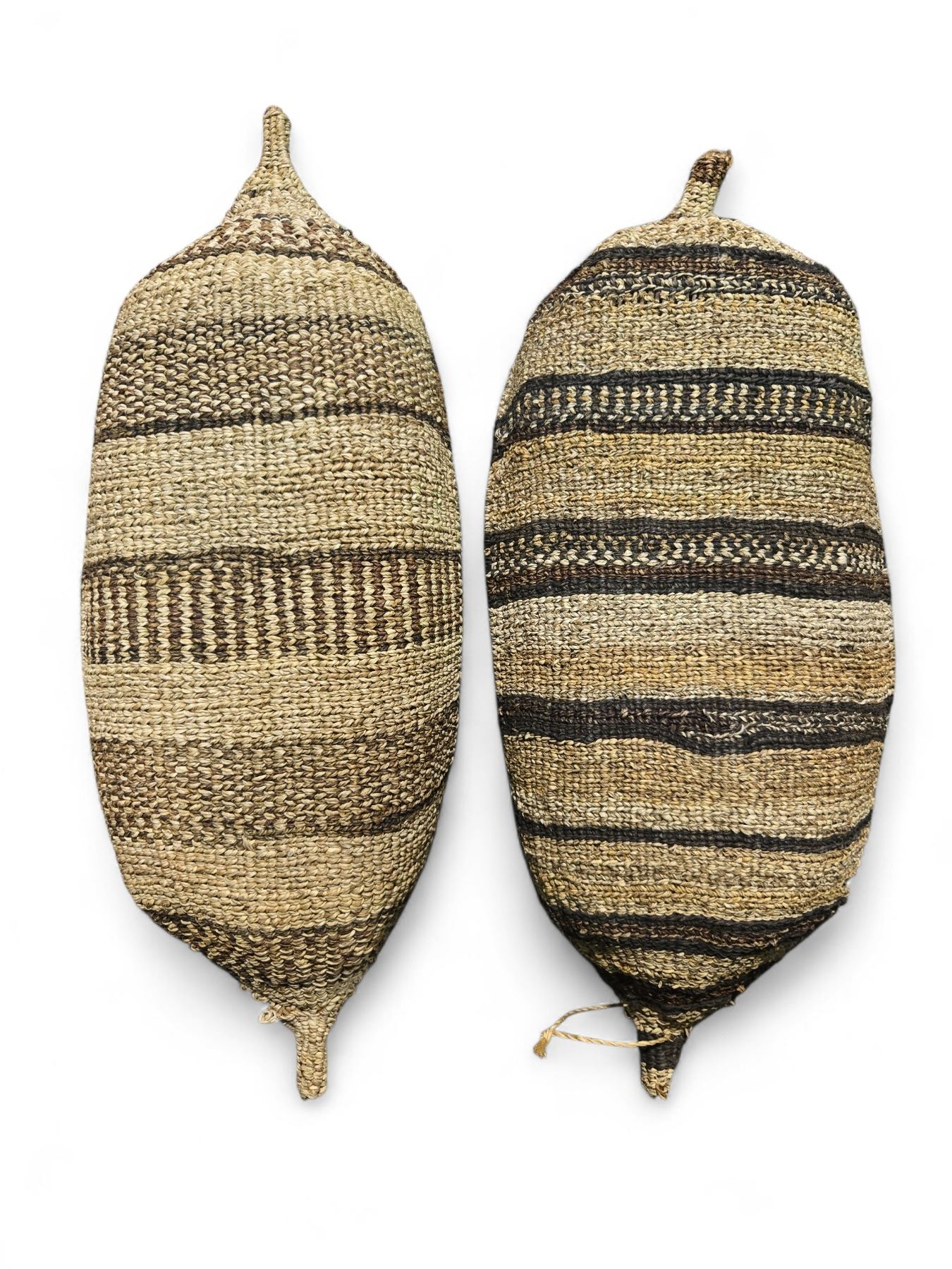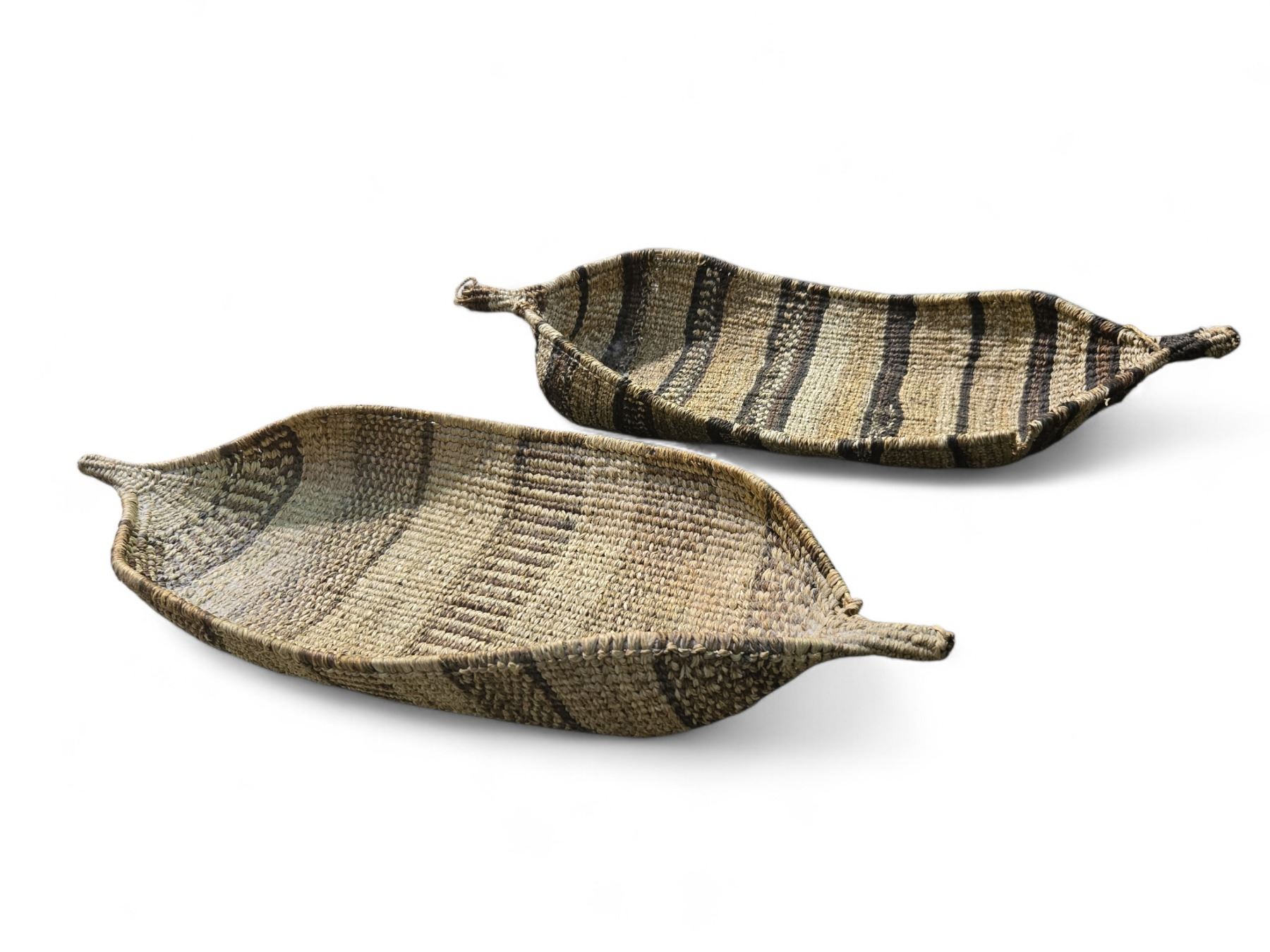 2 Vintage Ethiopian Gebela Handwoven Canoe Shaped Baskets (9" x 21" x 2.5" deep) - one has a small tear
