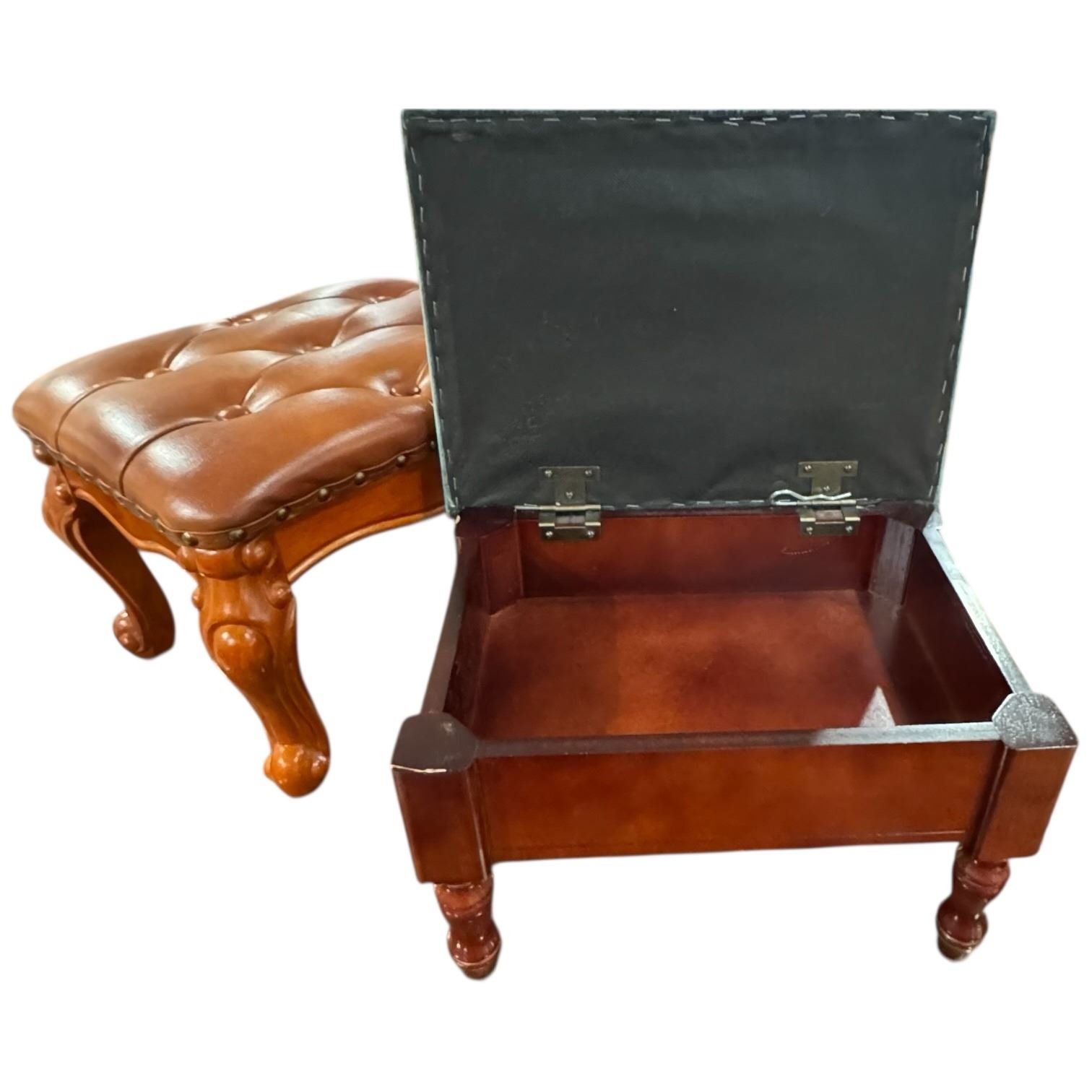 2 Vintage Foot Stools - The Leather Look Stool has Storage