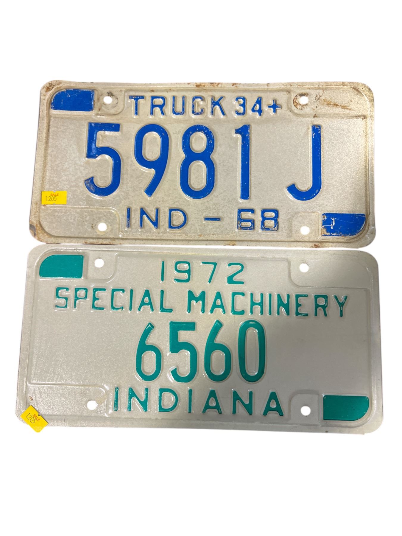 2 Vintage Indiana License Plates: 5981 J (IND - 1968 Truck) and 6560 (1972 Special Machinery)