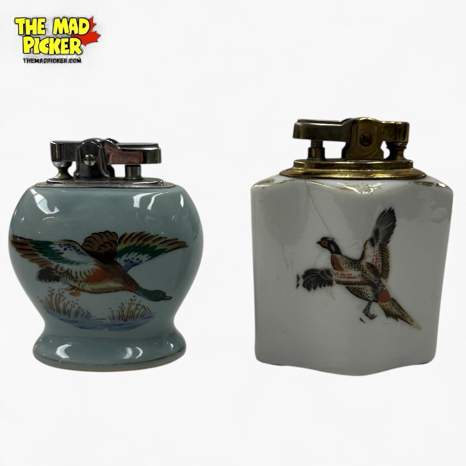 2 Vintage Japanese Porcelain Table Lighters - One has a crack under the glaze