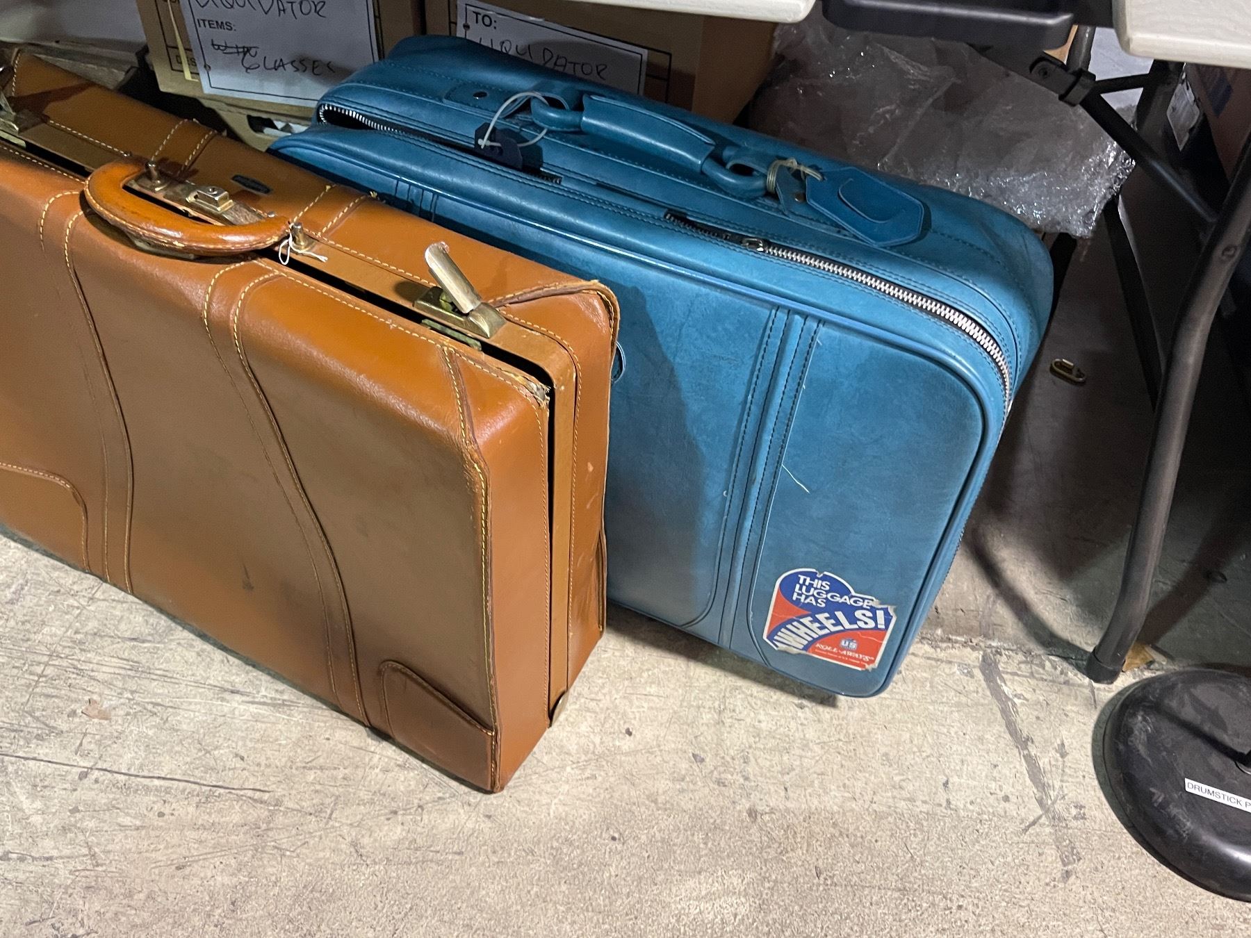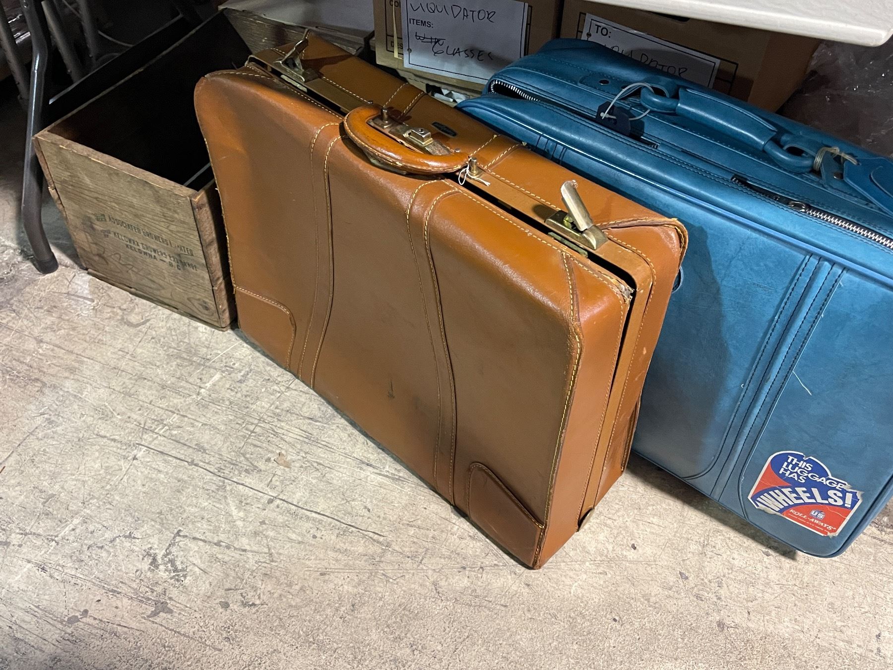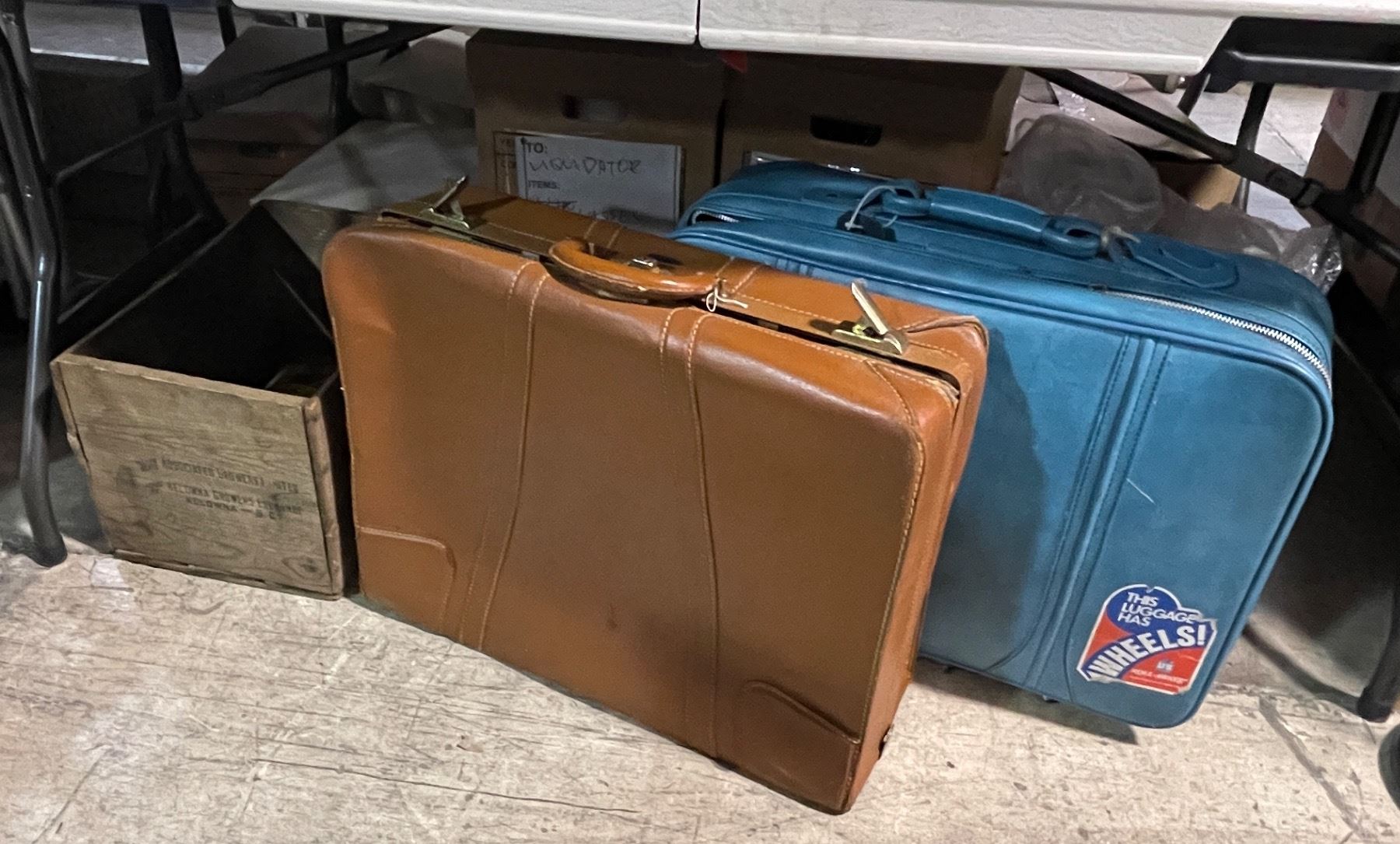 2 Vintage Luggages and 1 Wooden box